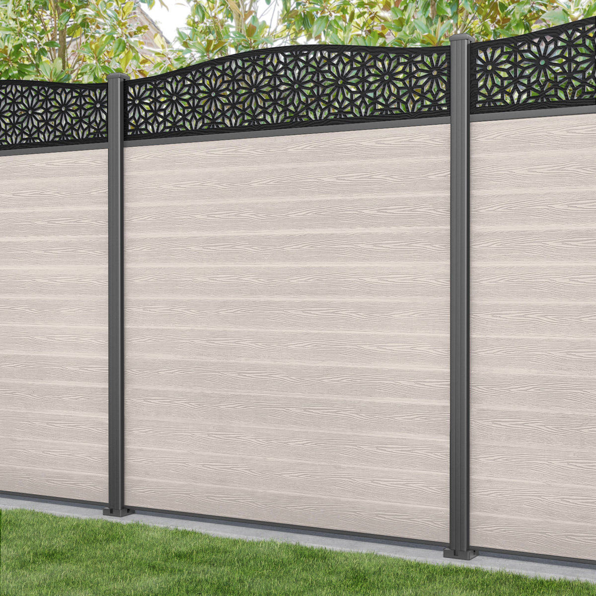 Classic Narwa Curved Top Fence Panel Mid Stone - with our aluminium posts