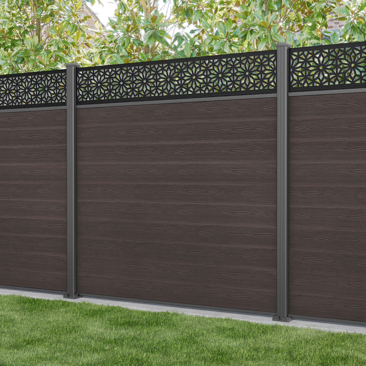 Classic Narwa Fence Panel Mid Brown - with our aluminium posts