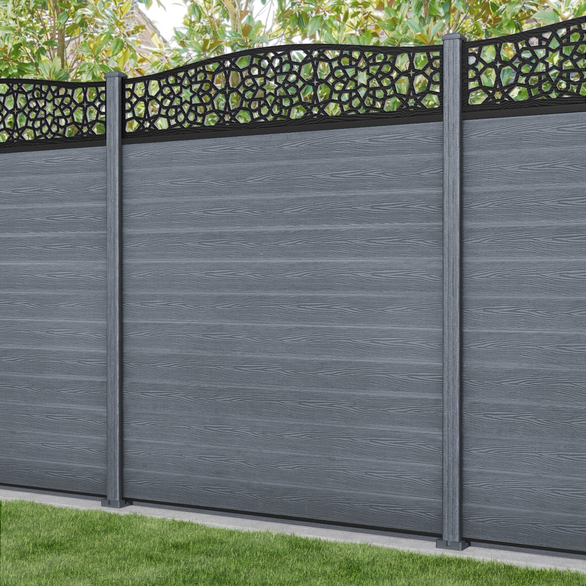 Classic Nazira Curved Top Fence Panel Anthracite - with our composite posts