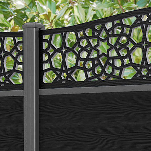 Classic Nazira Curved Top Fence Panel Black - with our aluminium posts