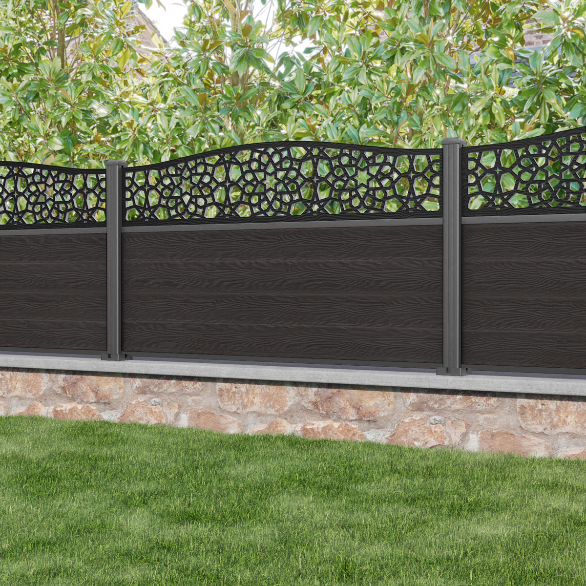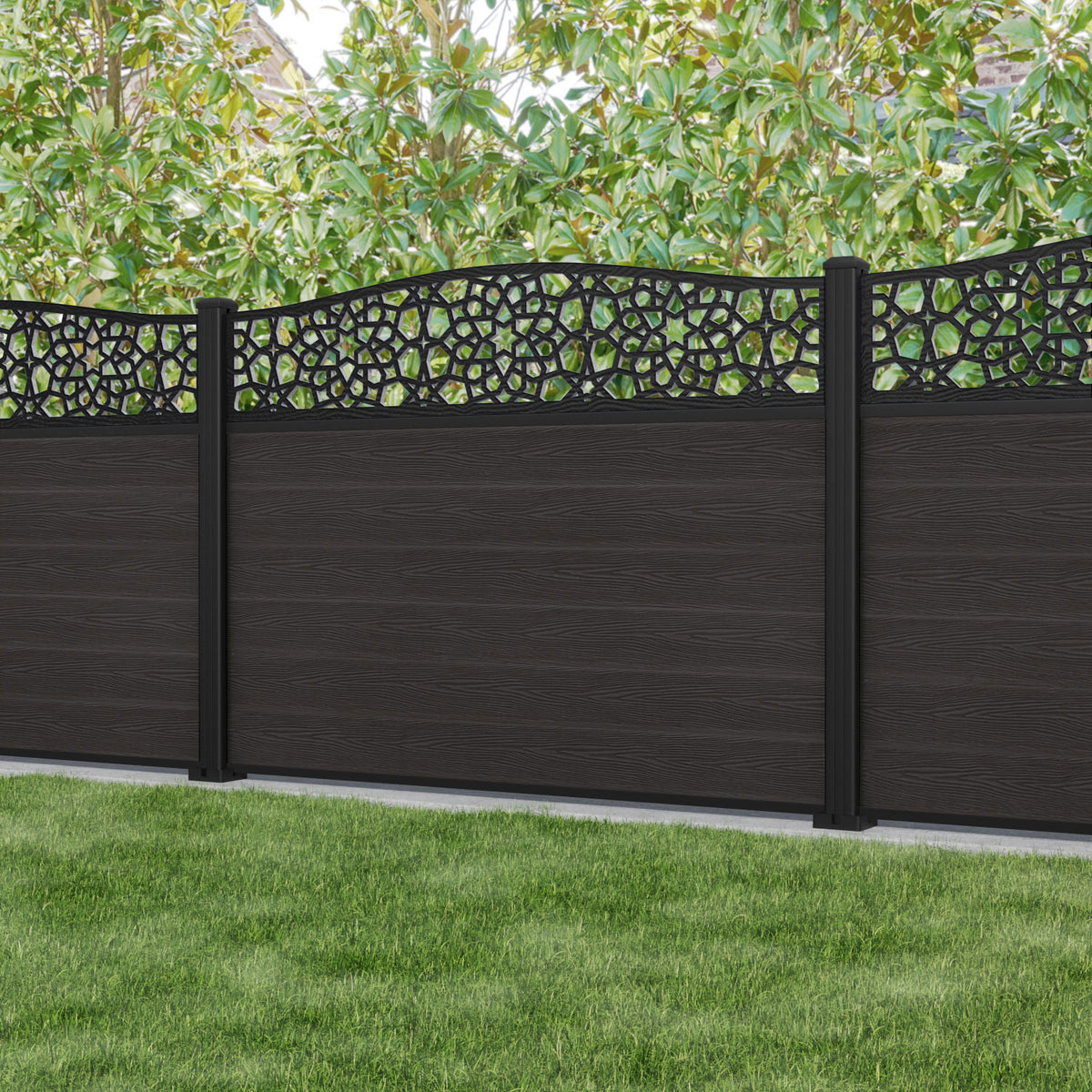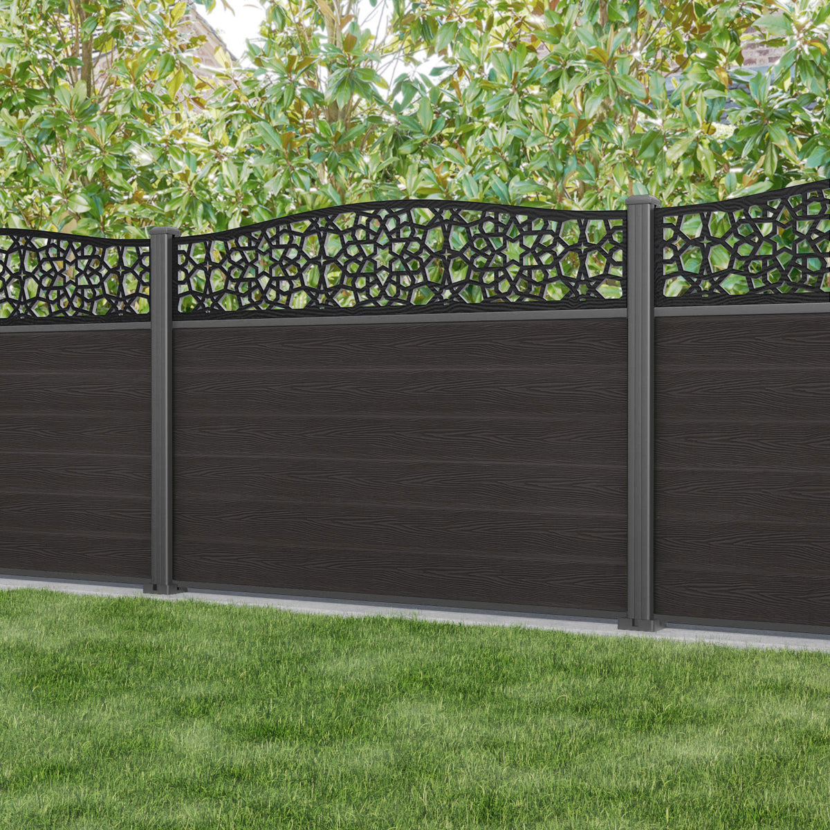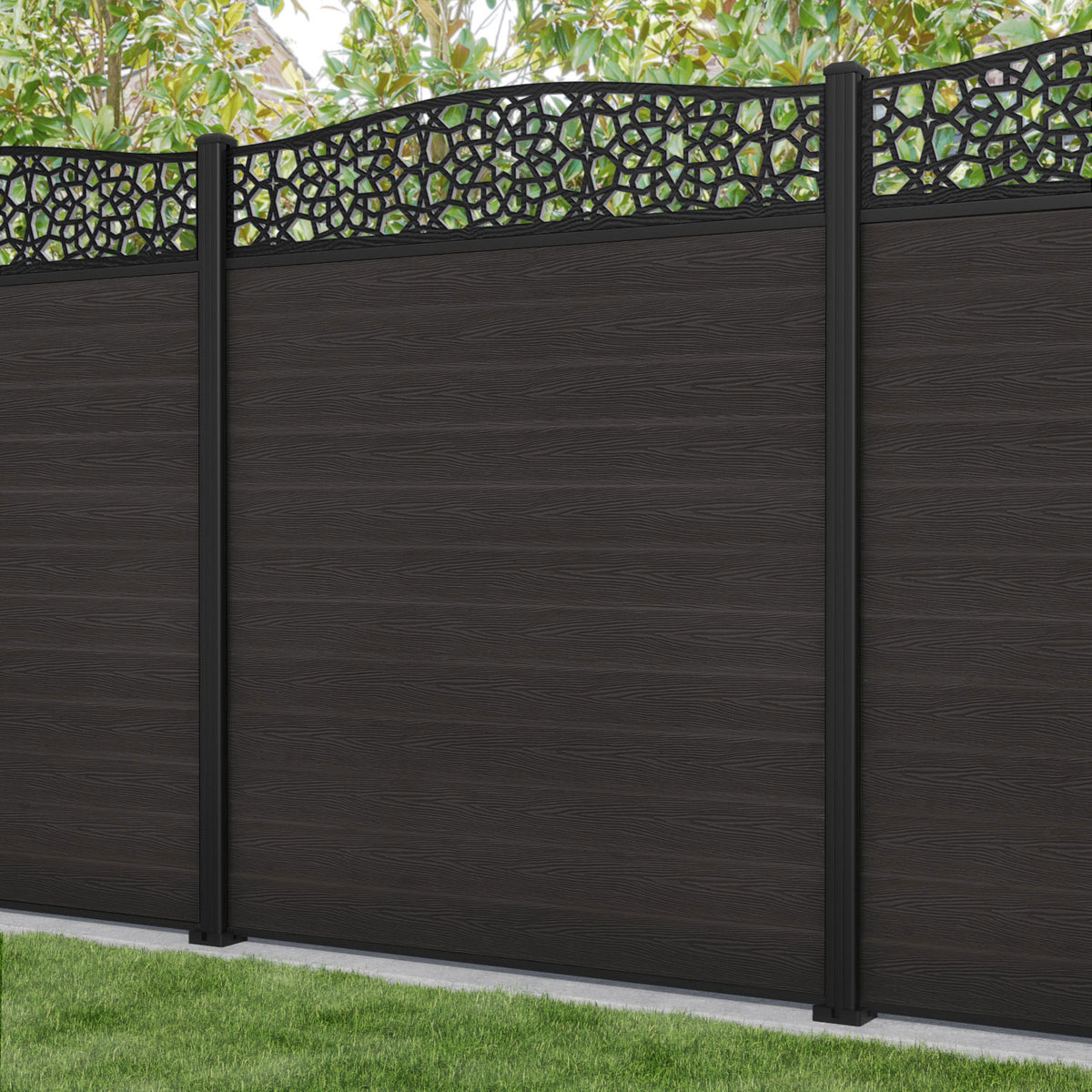 Classic Nazira Curved Top Fence Panel Dark Oak - with our aluminium posts