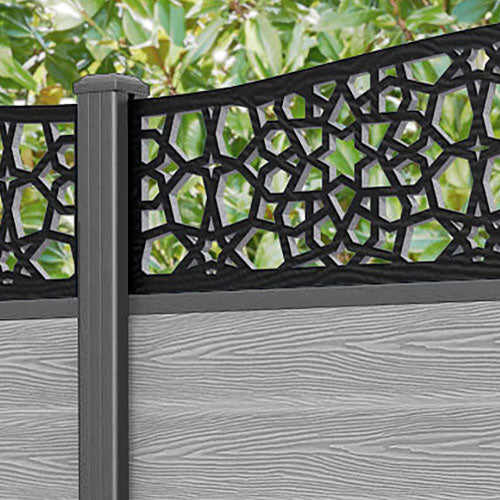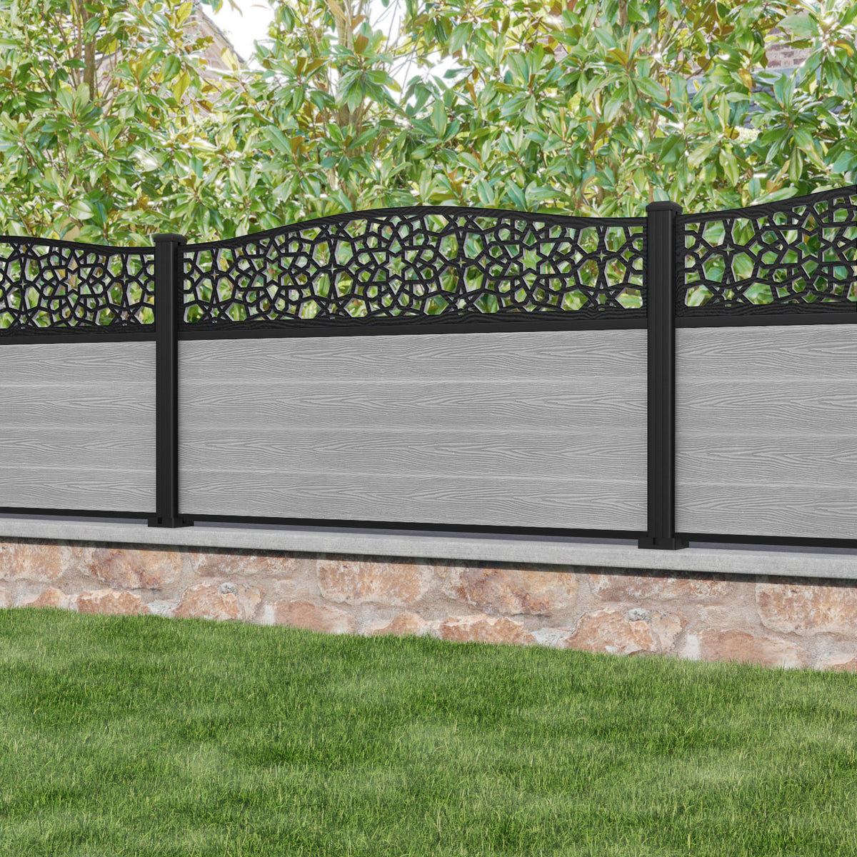 Classic Nazira Curved Top Fence Panel Light Grey - with our aluminium posts