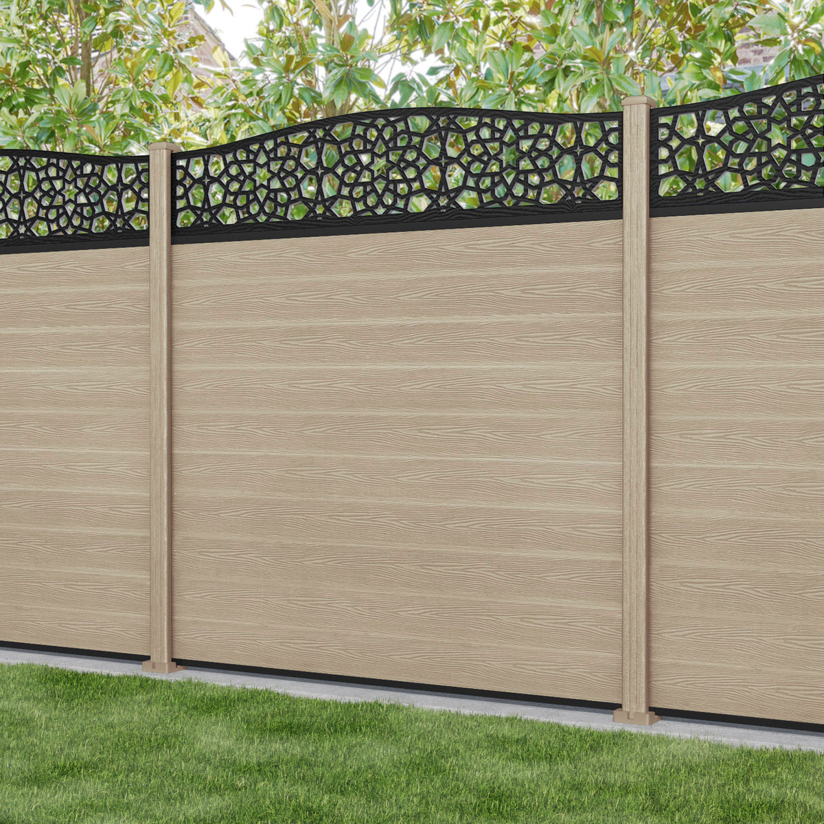 Classic Nazira Curved Top Fence Panel Light Oak - with our composite posts