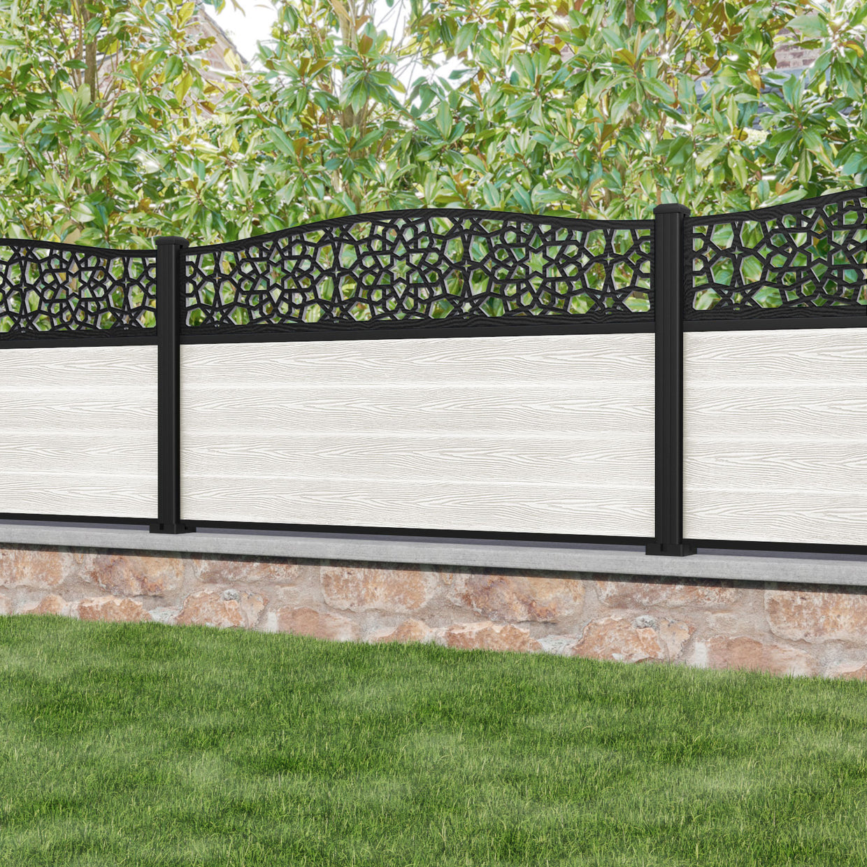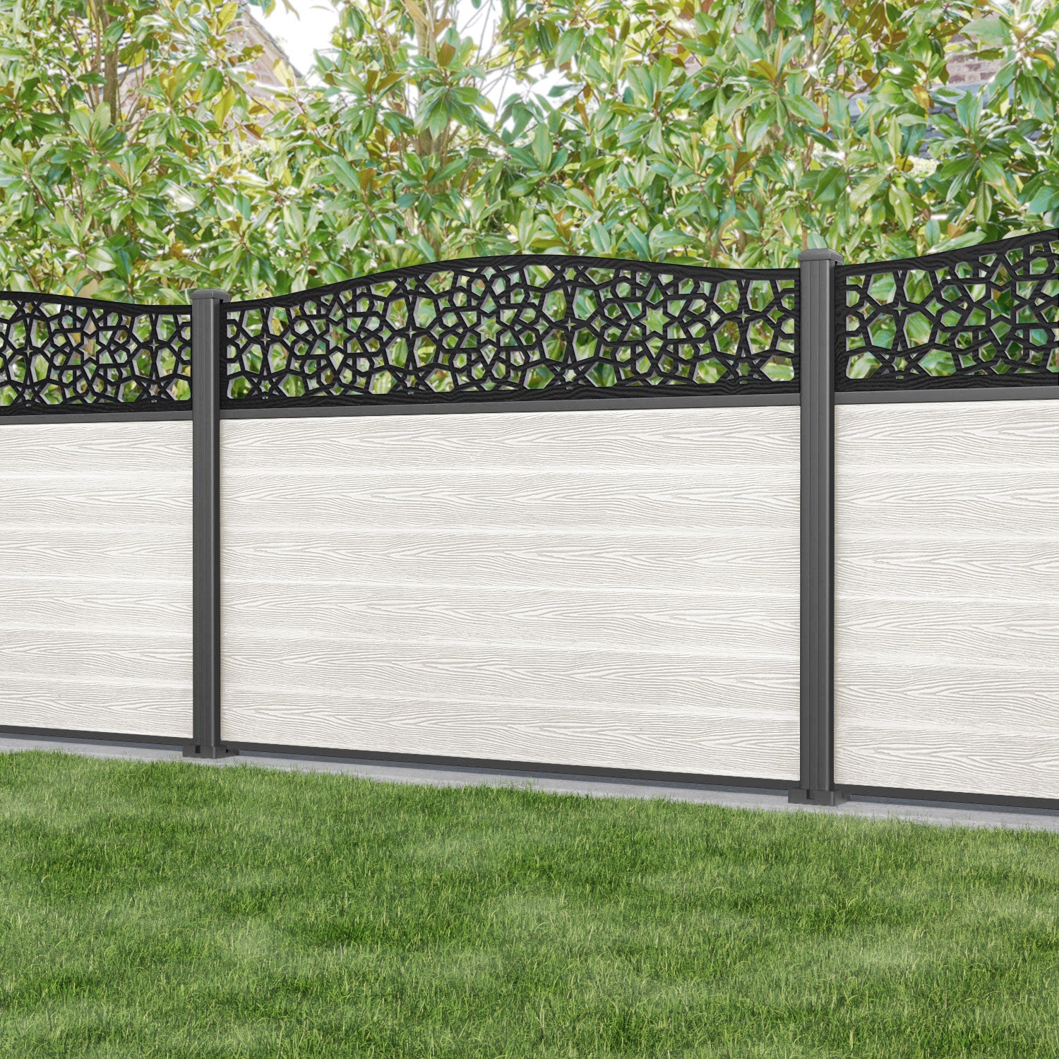 Classic Nazira Curved Top Fence Panel Light Stone - with our aluminium posts