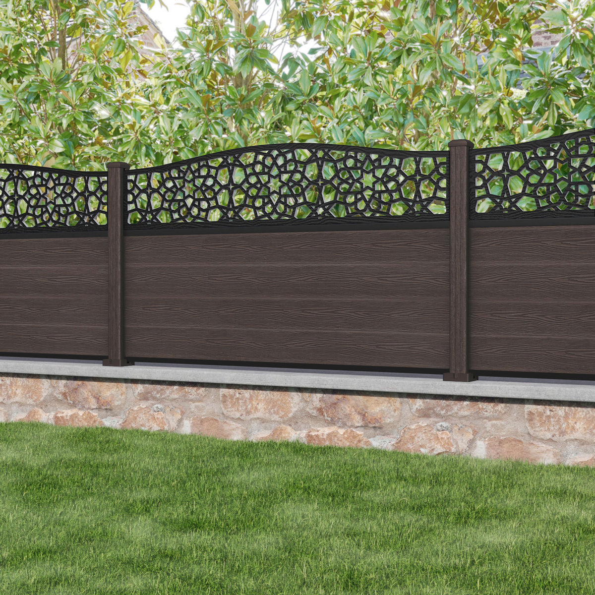 Classic Nazira Curved Top Fence Panel Mid Brown - with our composite posts
