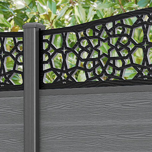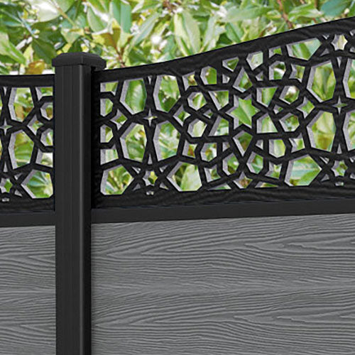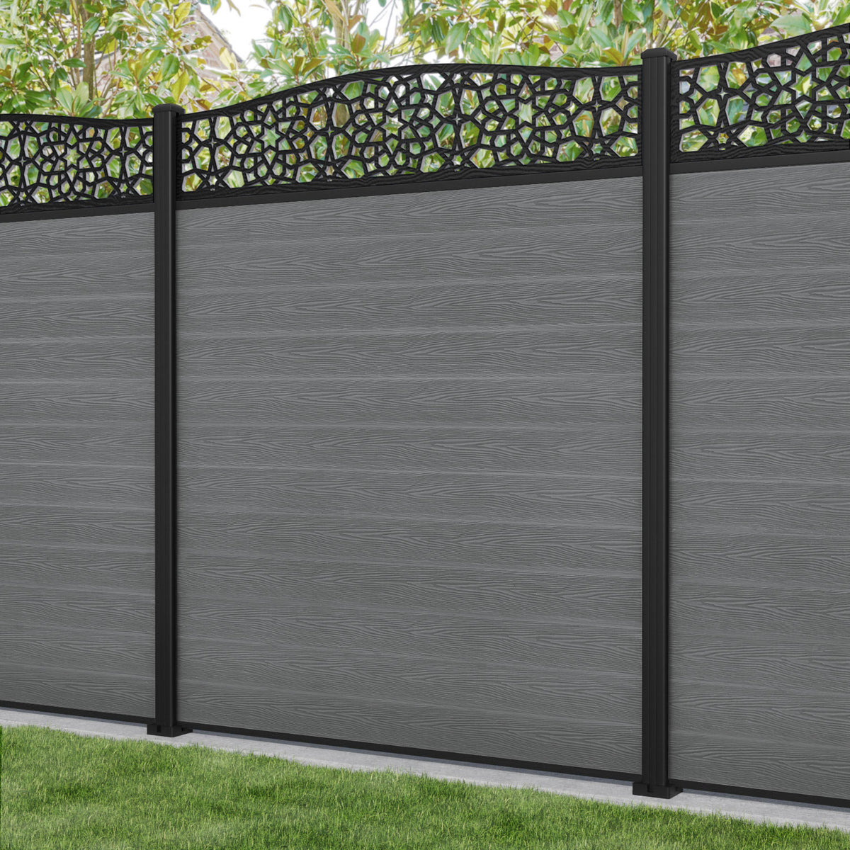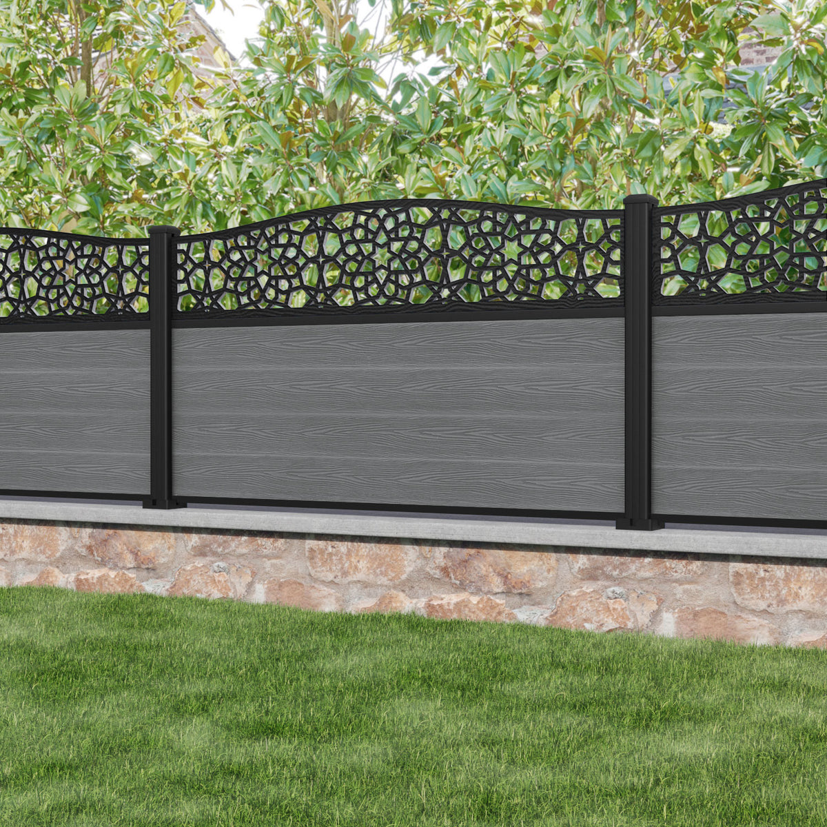 Classic Nazira Curved Top Fence Panel Mid Grey - with our aluminium posts