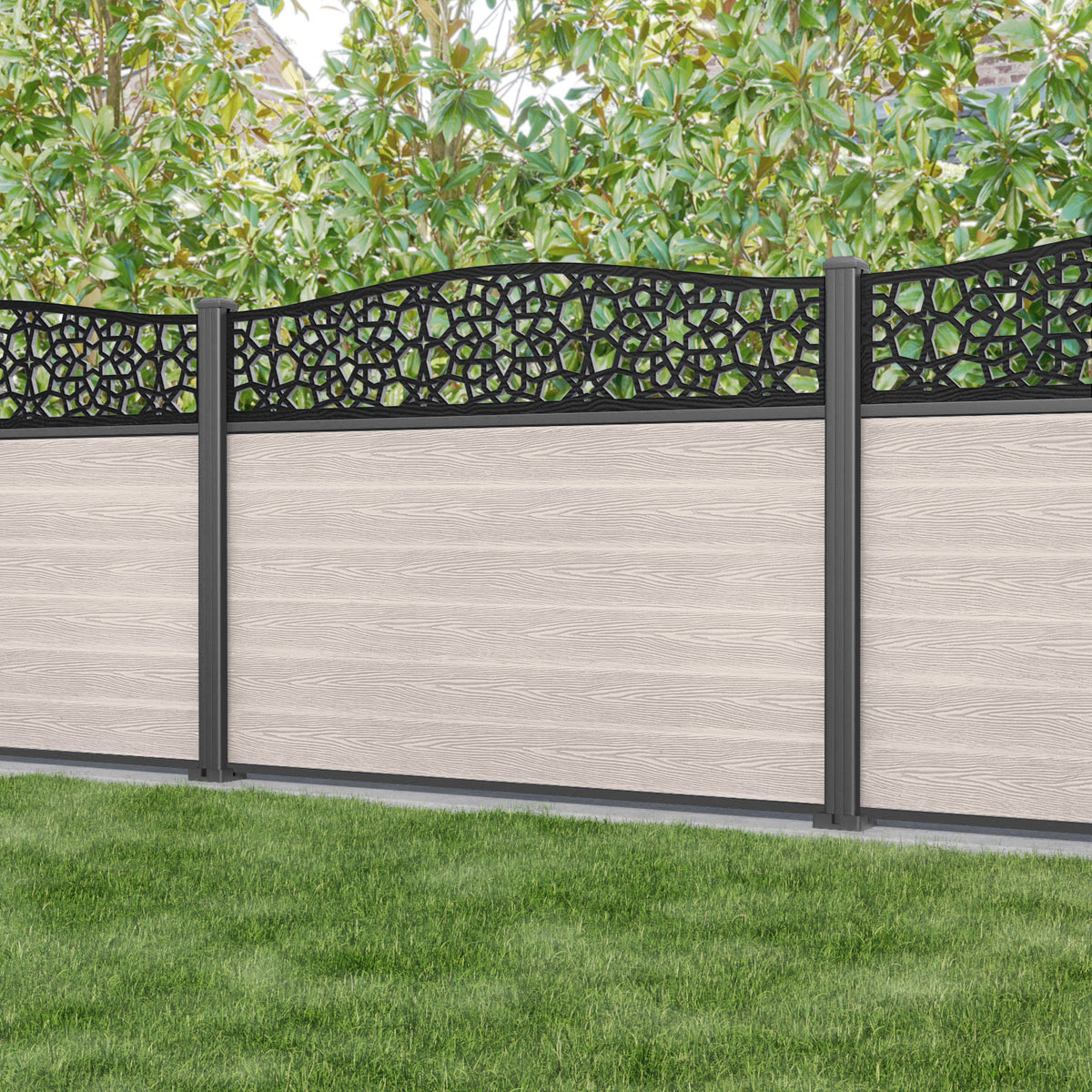Classic Nazira Curved Top Fence Panel Mid Stone - with our aluminium posts