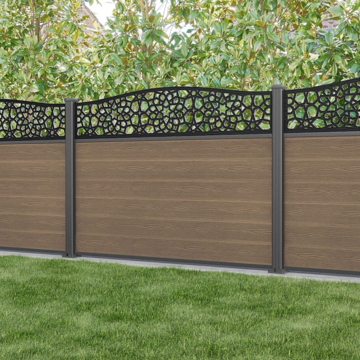 Classic Nazira Curved Top Fence Panel Teak - with our aluminium posts