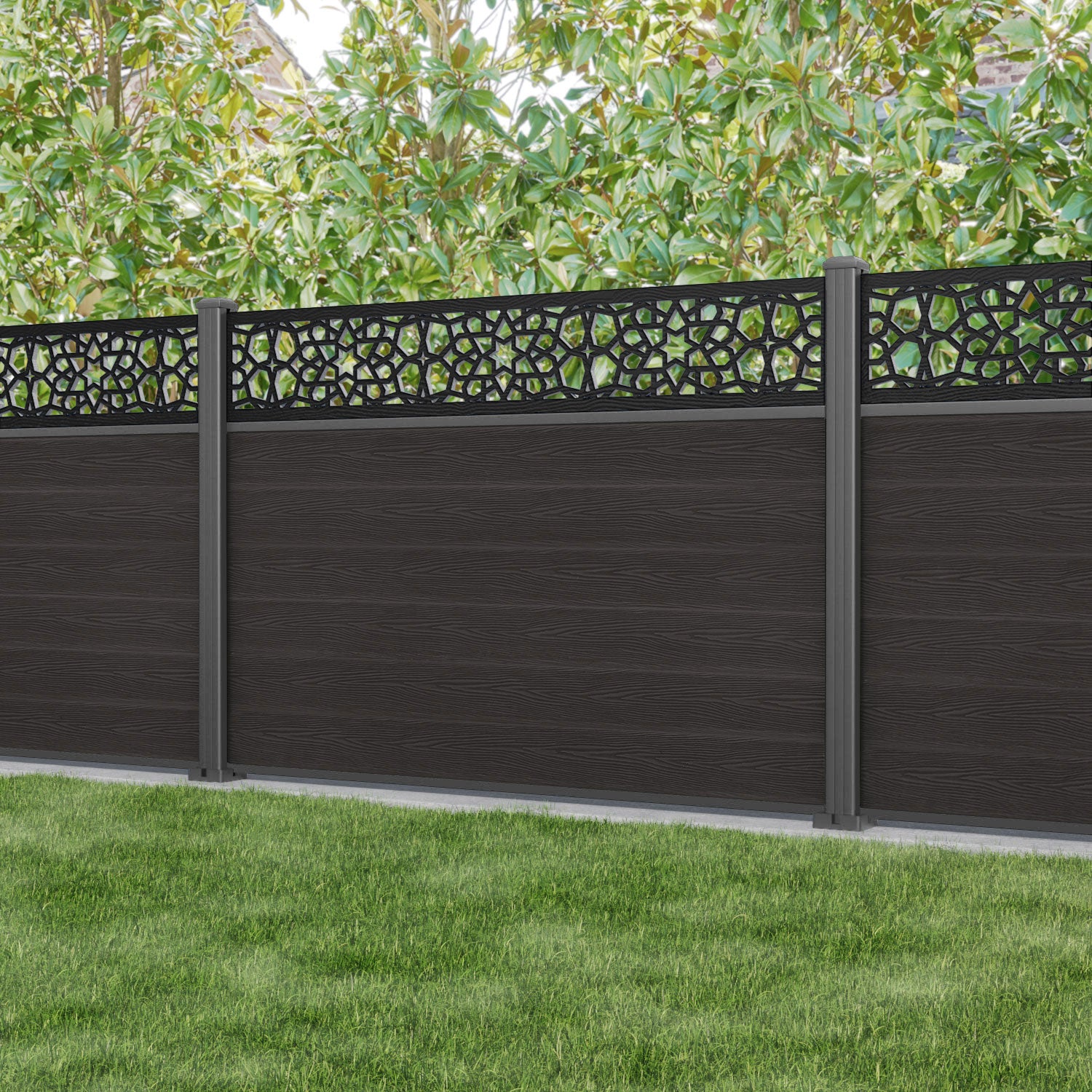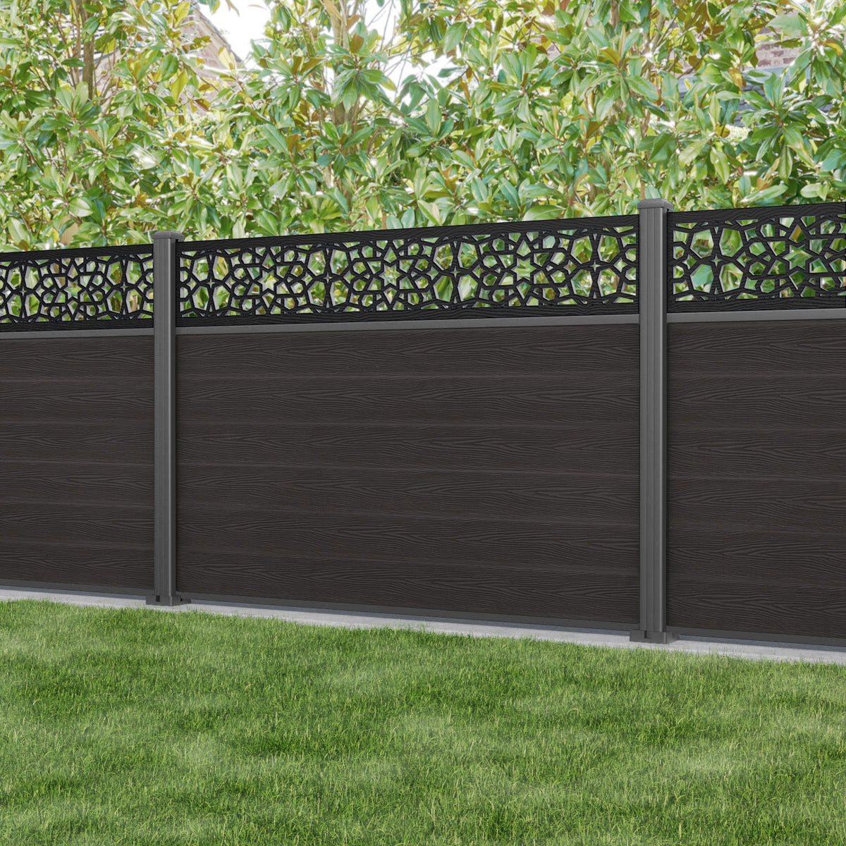 Classic Nazira Fence Panel Dark Oak - with our aluminium posts
