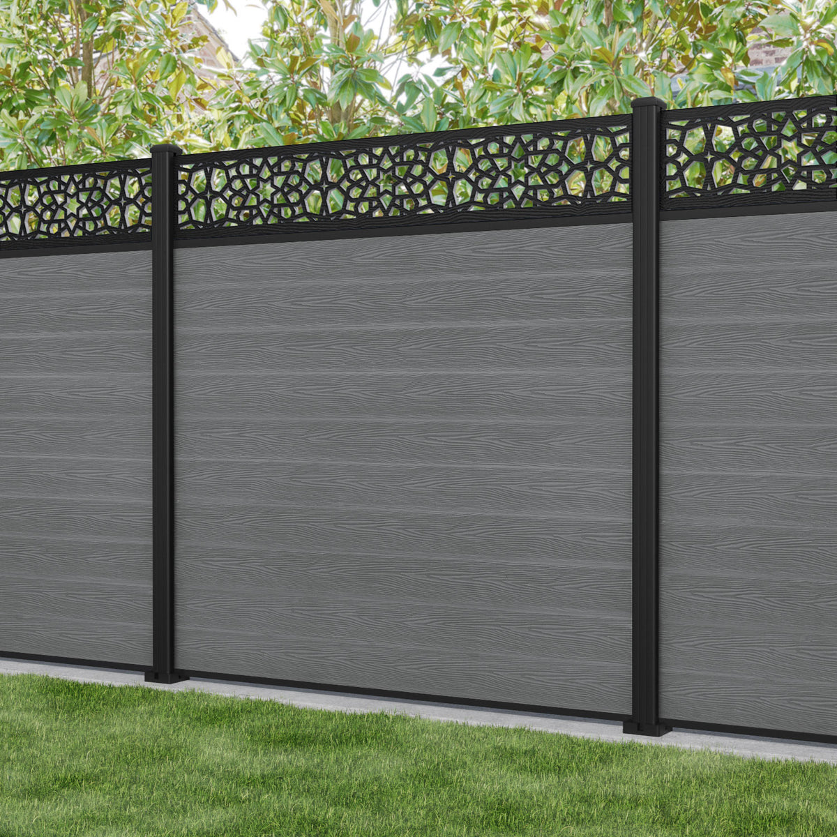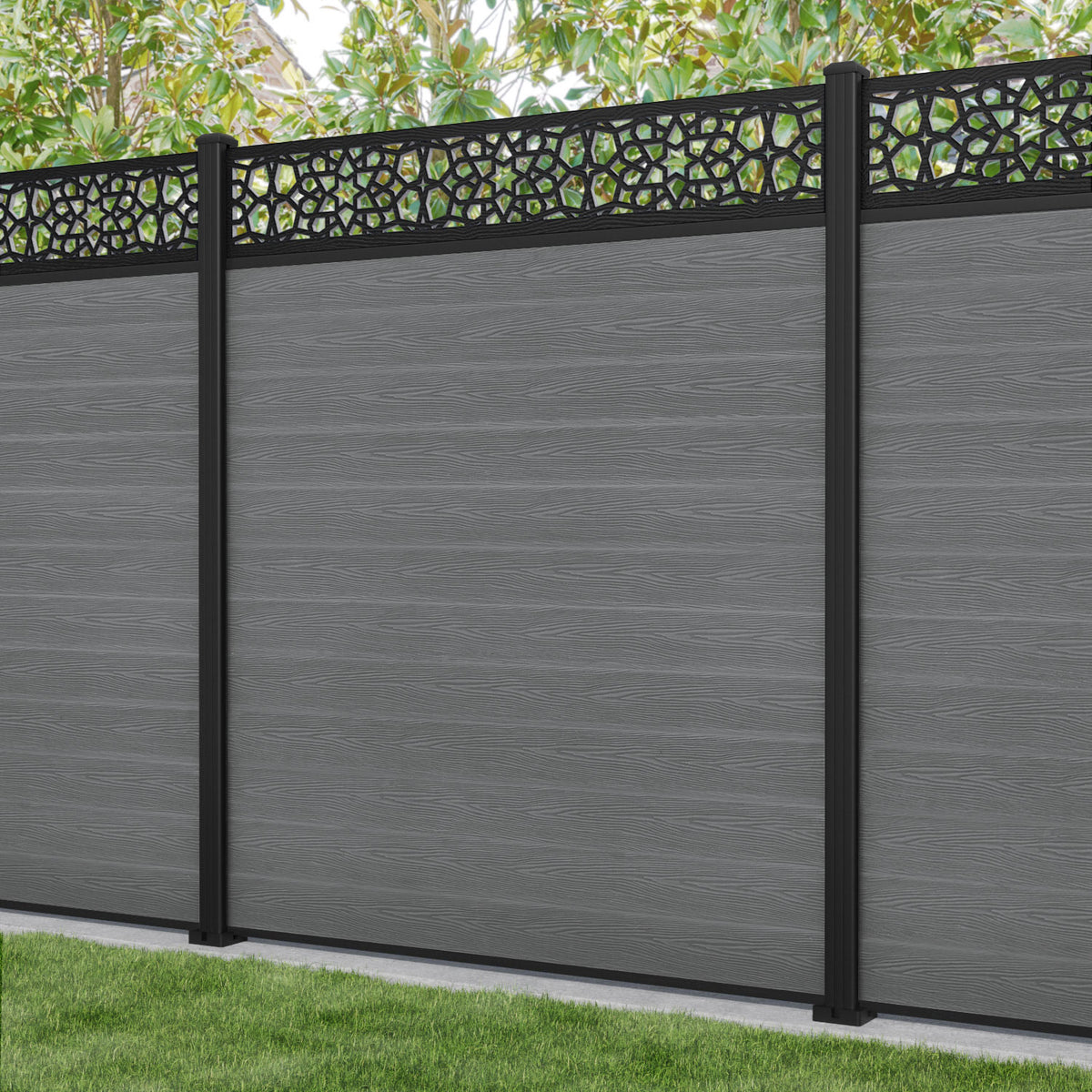 Classic Nazira Fence Panel Mid Grey - with our aluminium posts