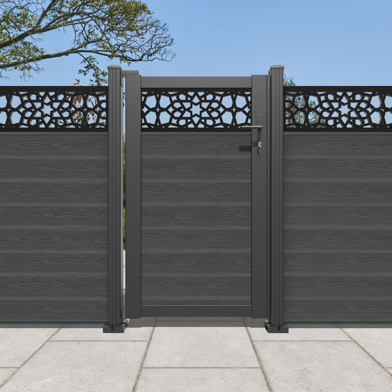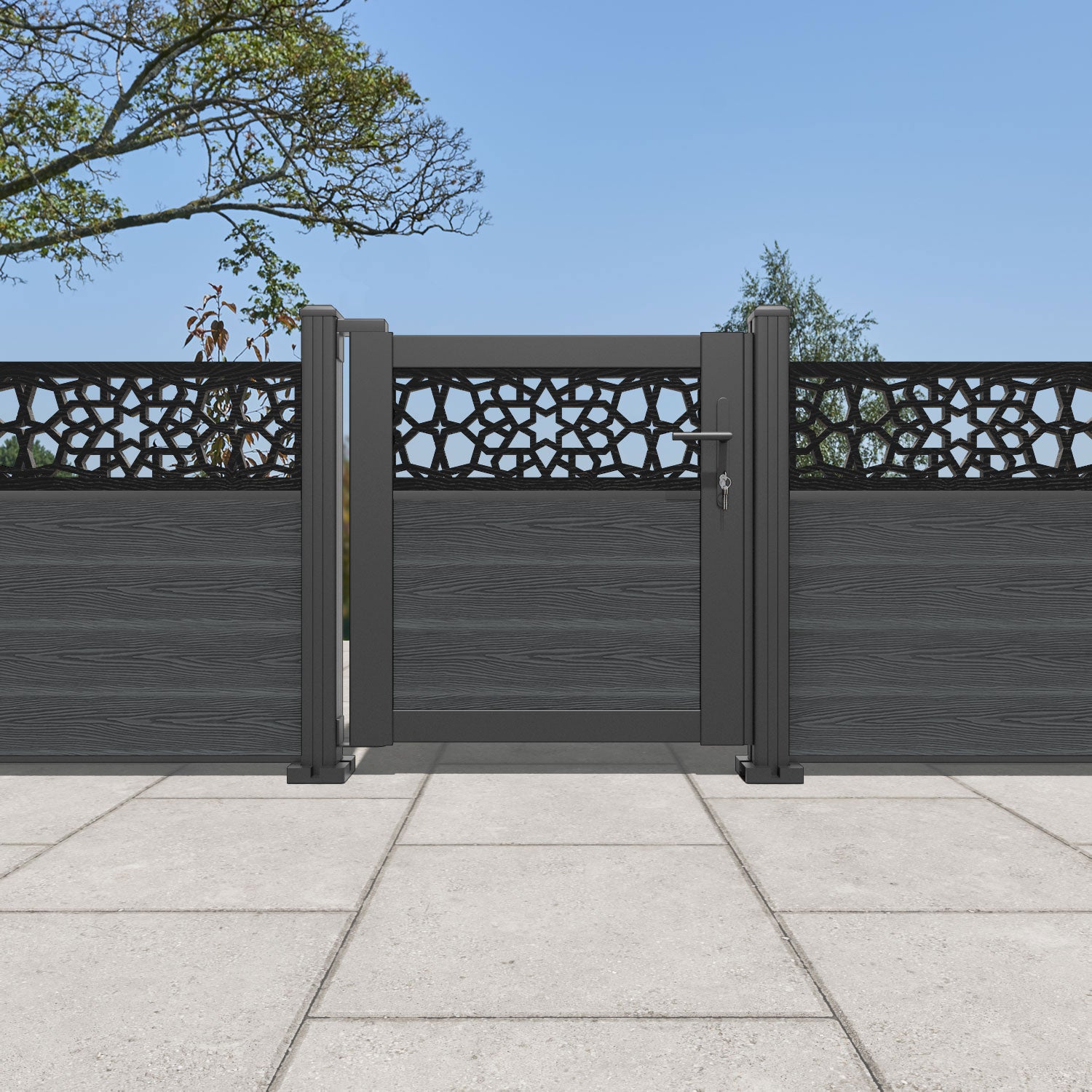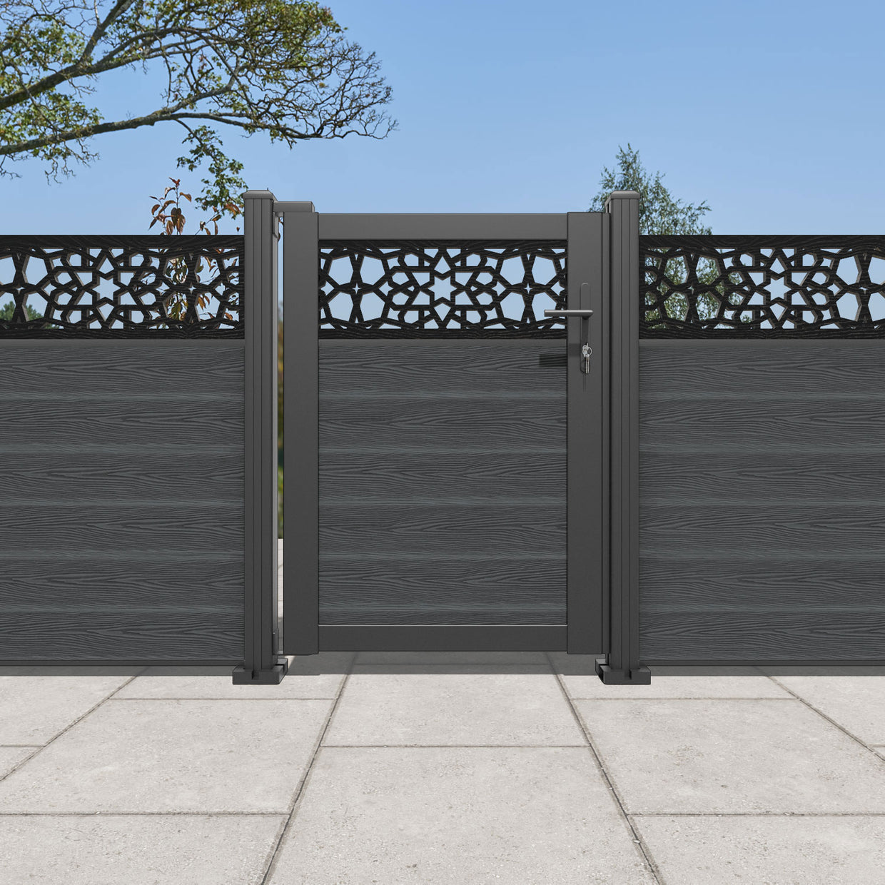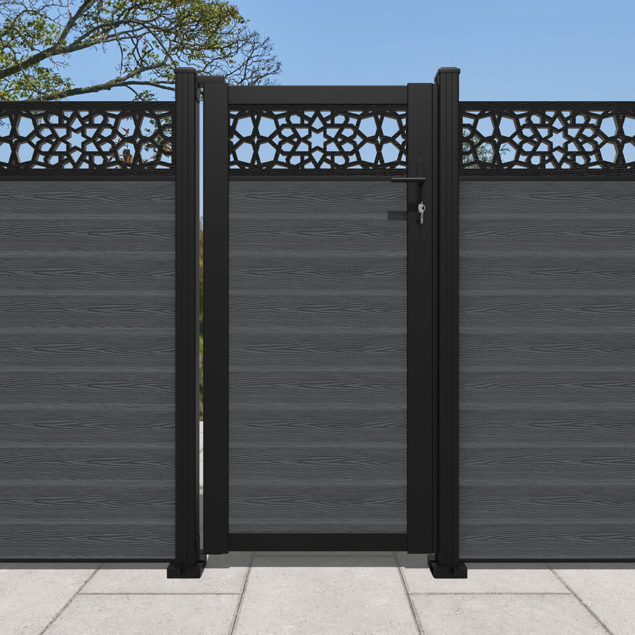 Pair your gate with our eco-friendly composite or aluminium slats for a seamless match to our fencing collections, ensuring a stylish and cohesive look.