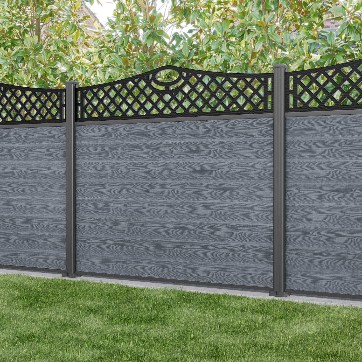 Classic Oxford Curved Top Fence Panel Anthracite - with our aluminium posts
