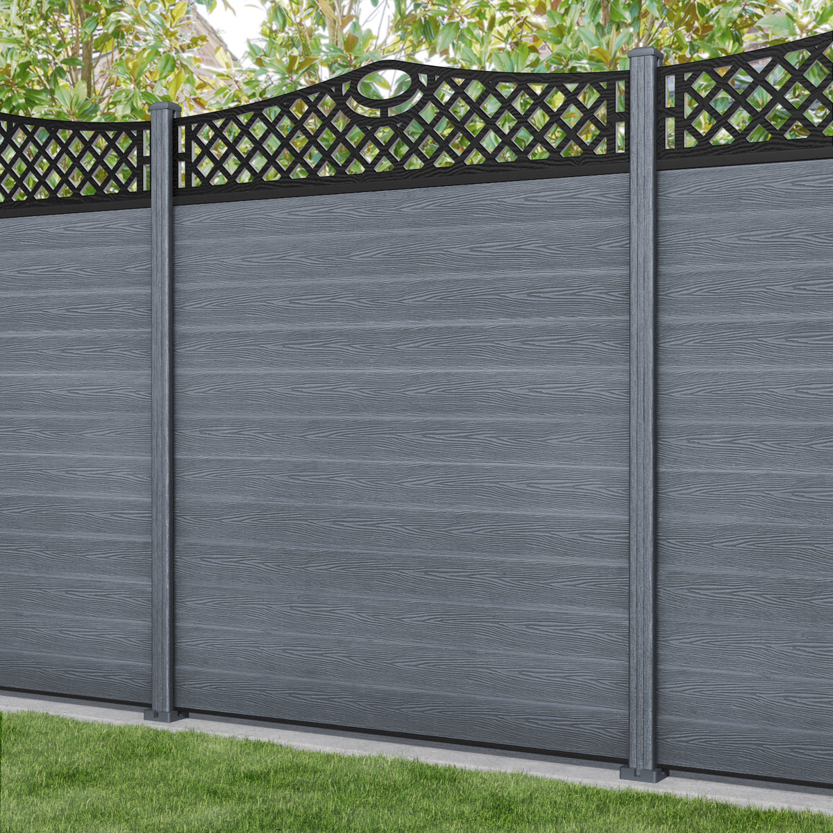Classic Oxford Curved Top Fence Panel Anthracite - with our composite posts