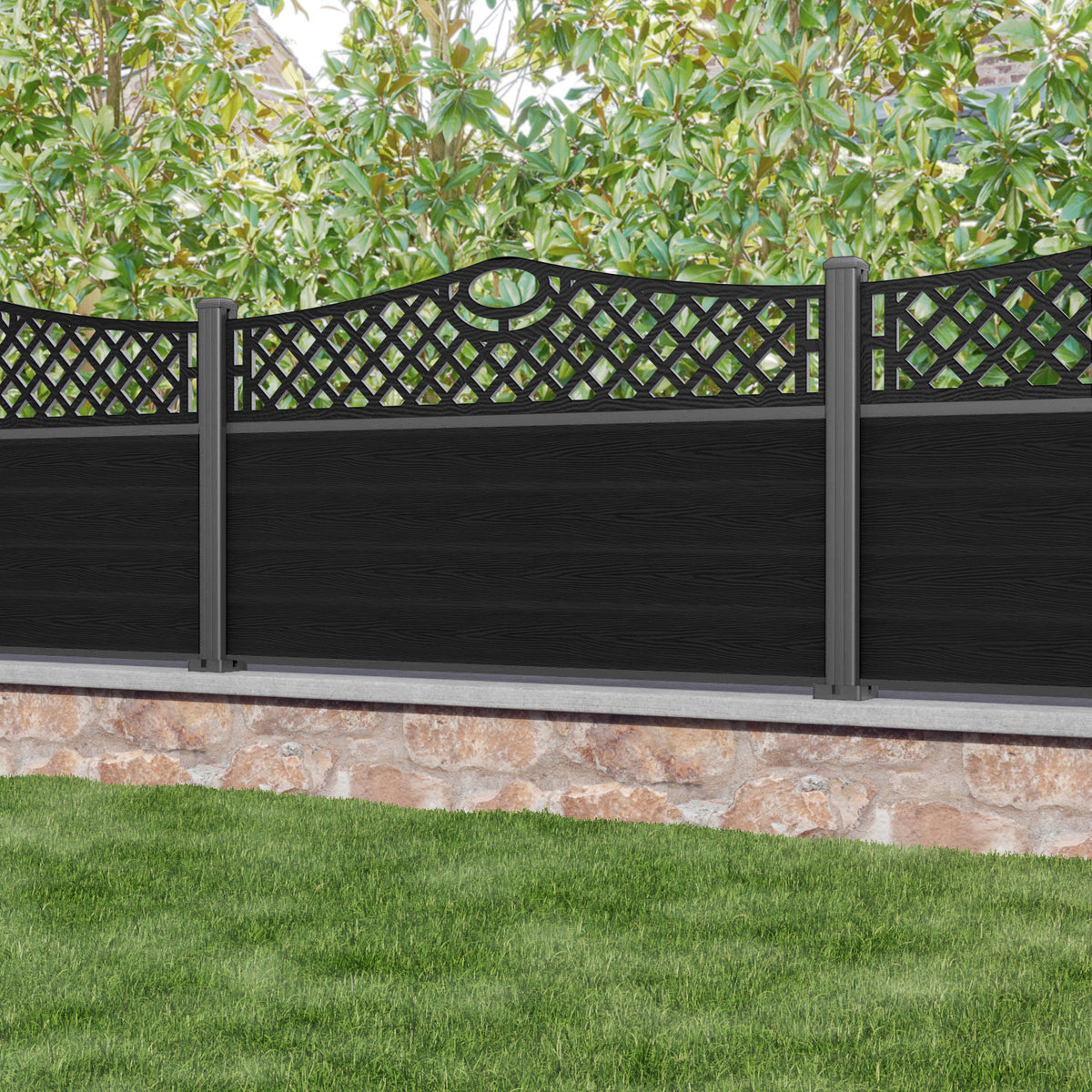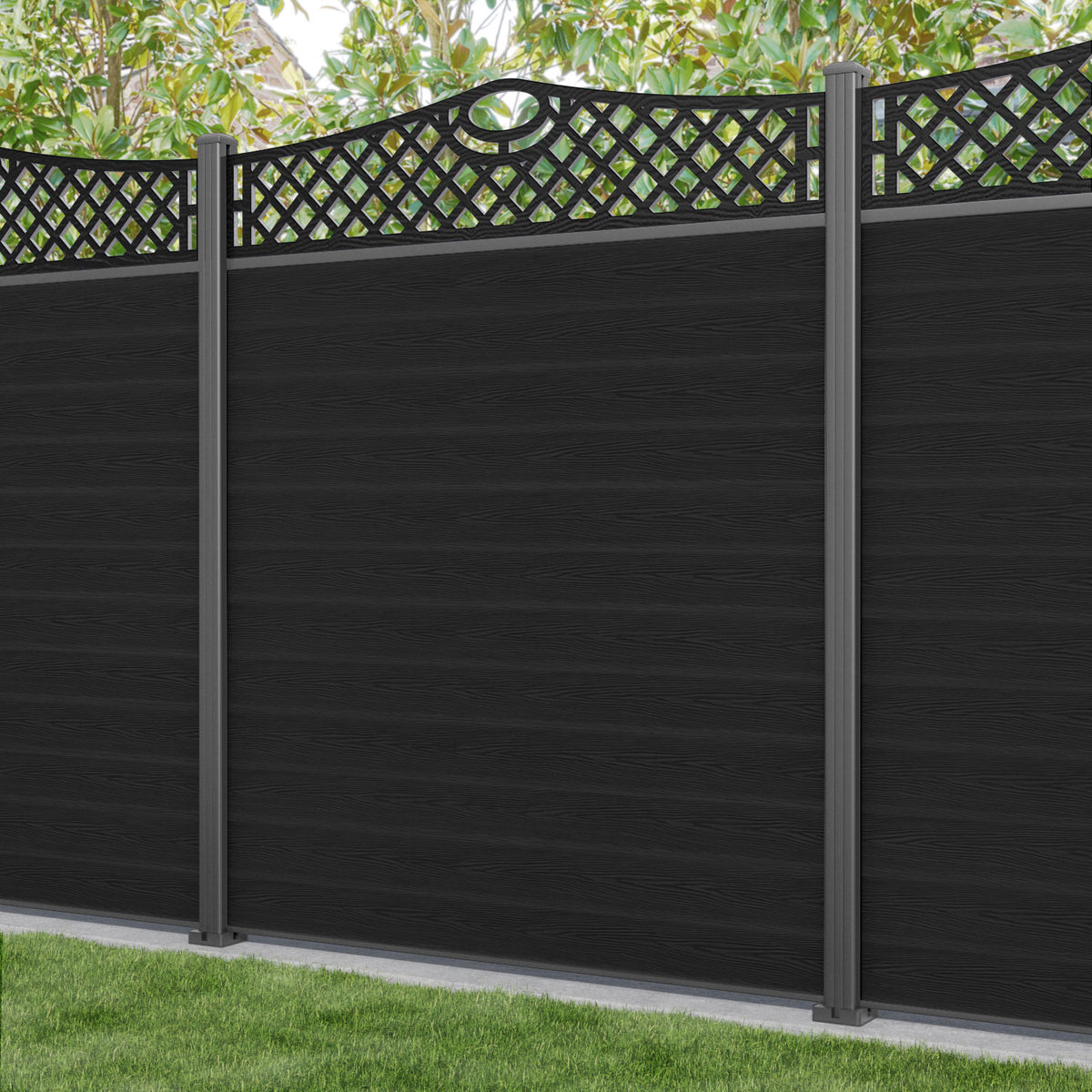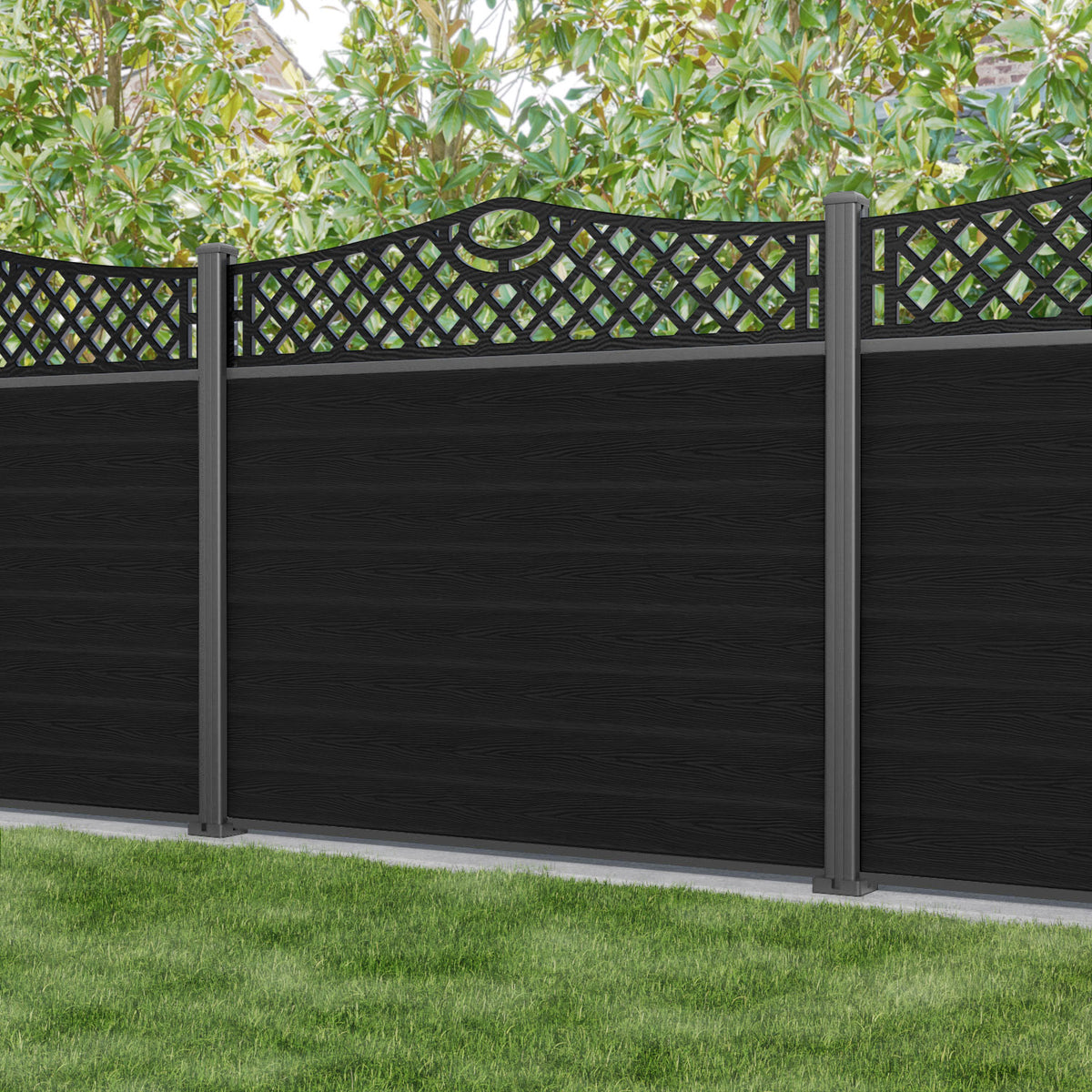 Classic Oxford Curved Top Fence Panel Black - with our aluminium posts