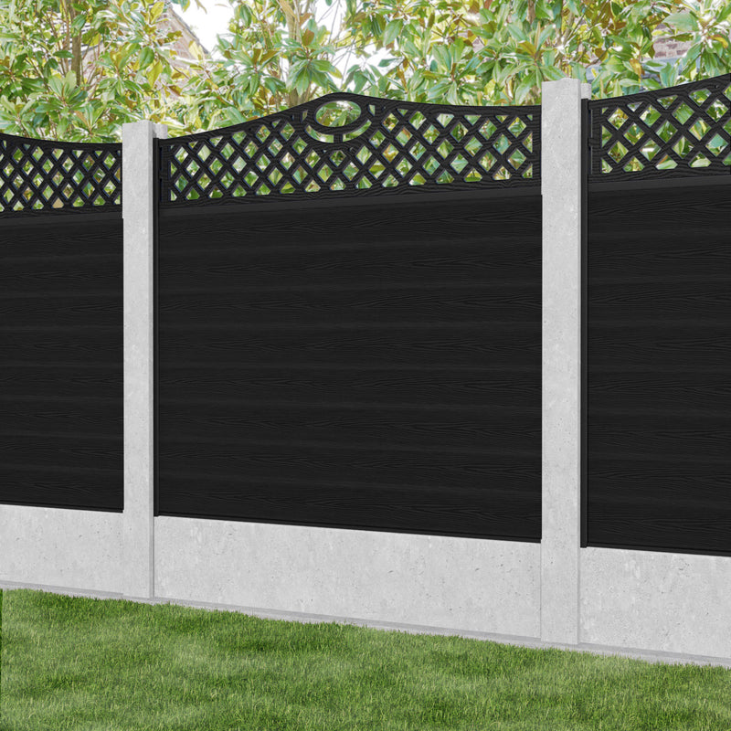 Classic Oxford Curved Top Fence Panel Black - for existing concrete posts