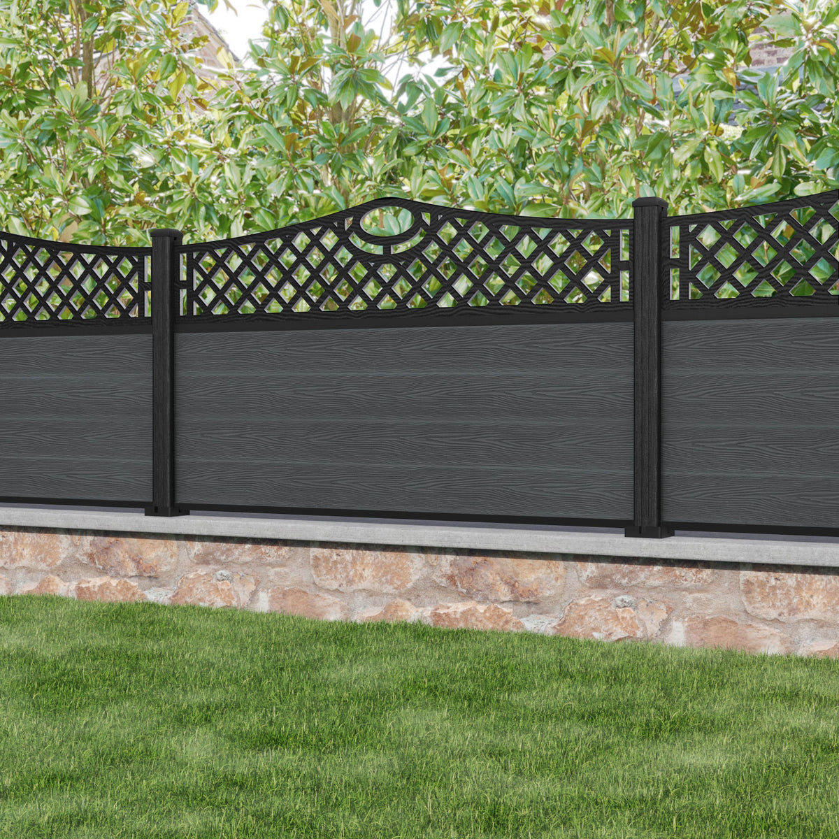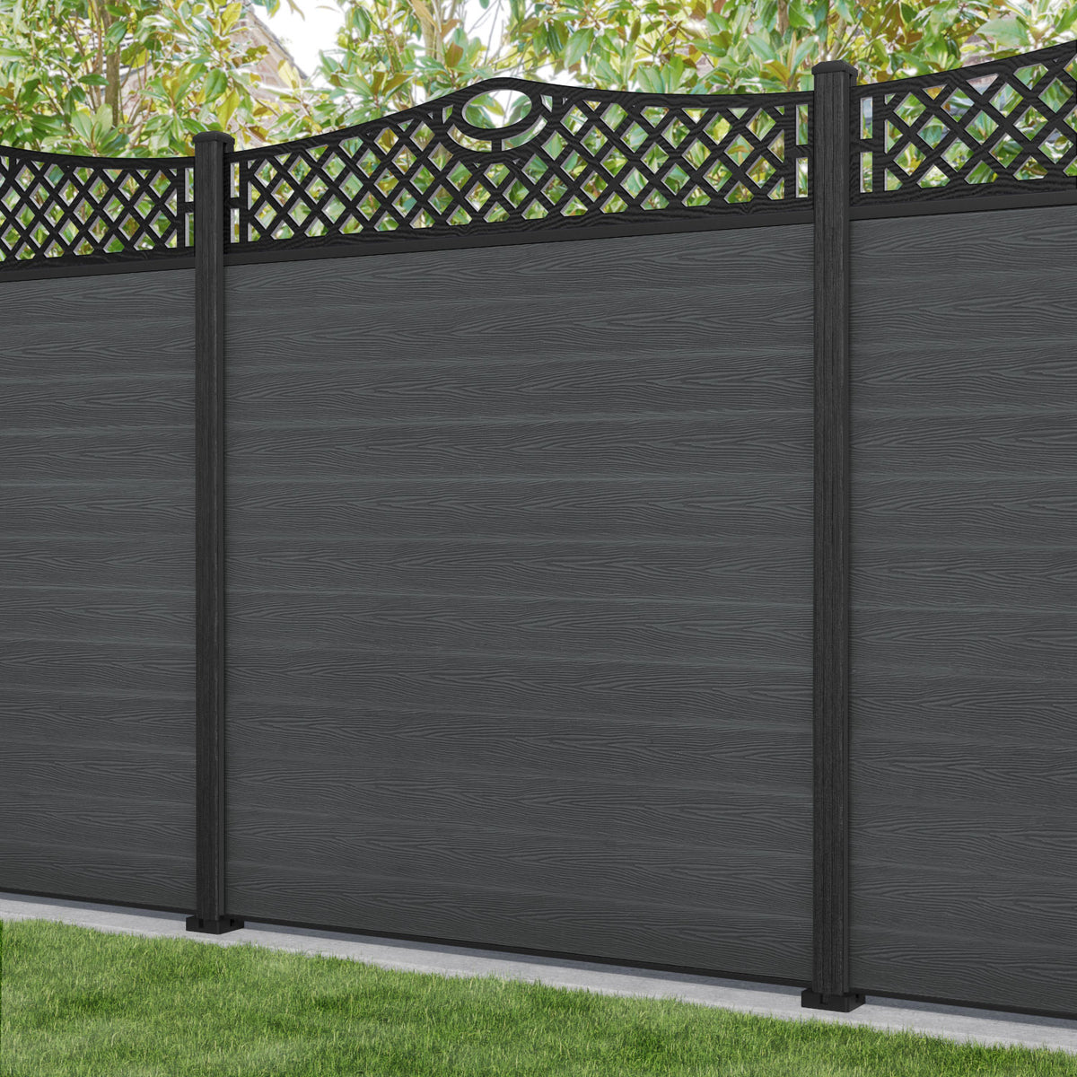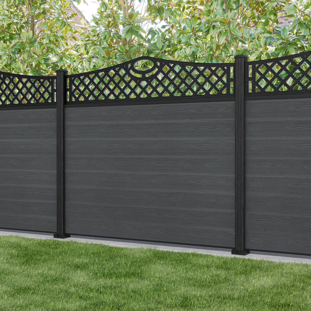 Classic Oxford Curved Top Fence Panel Dark Grey - with our composite posts