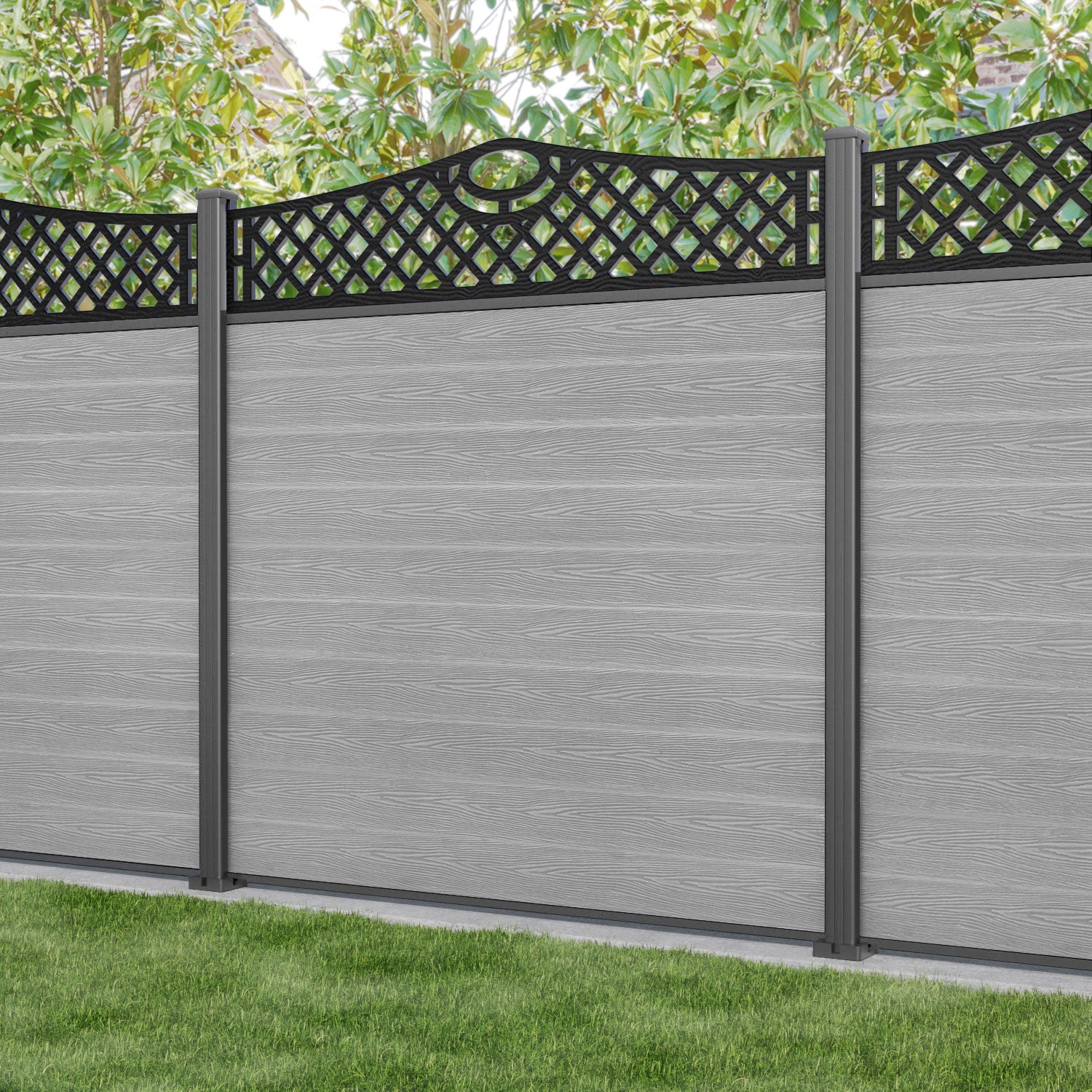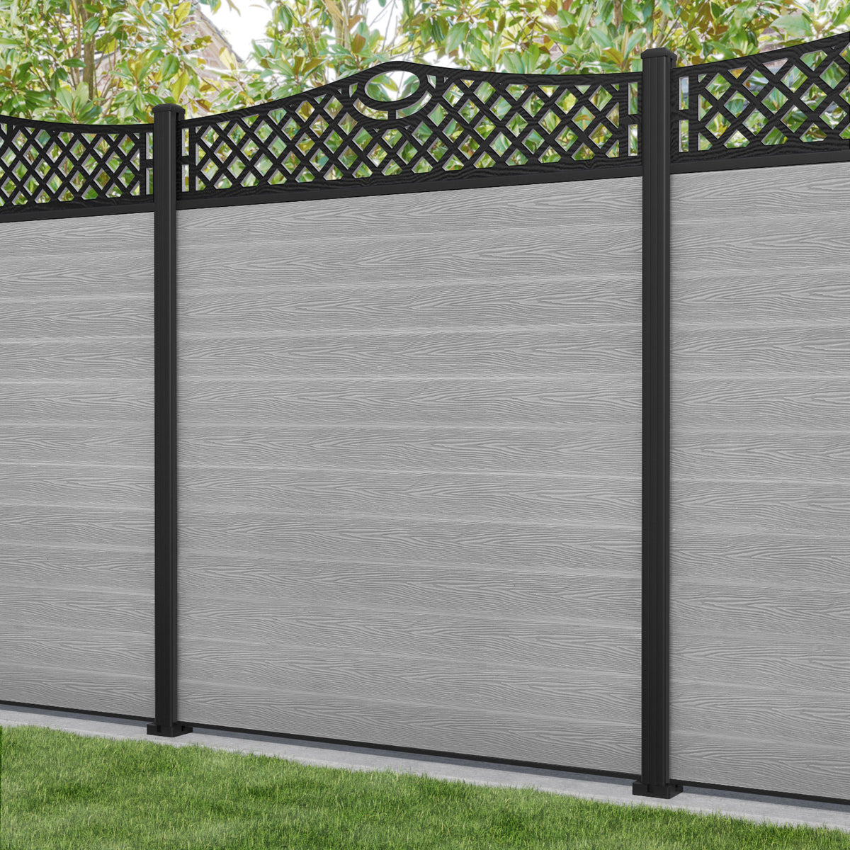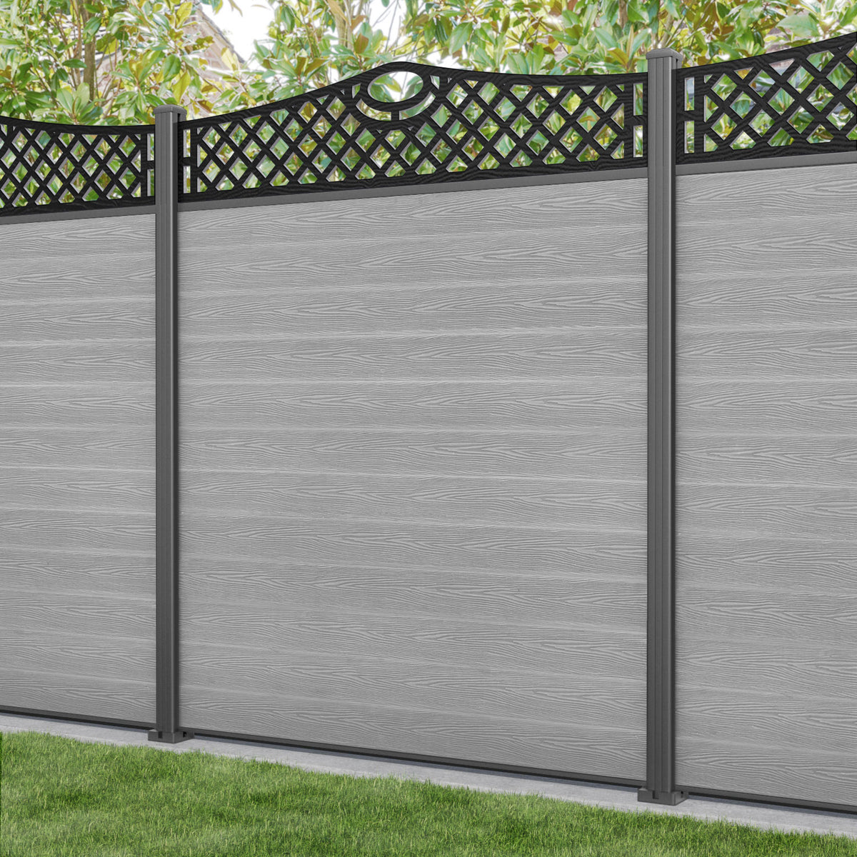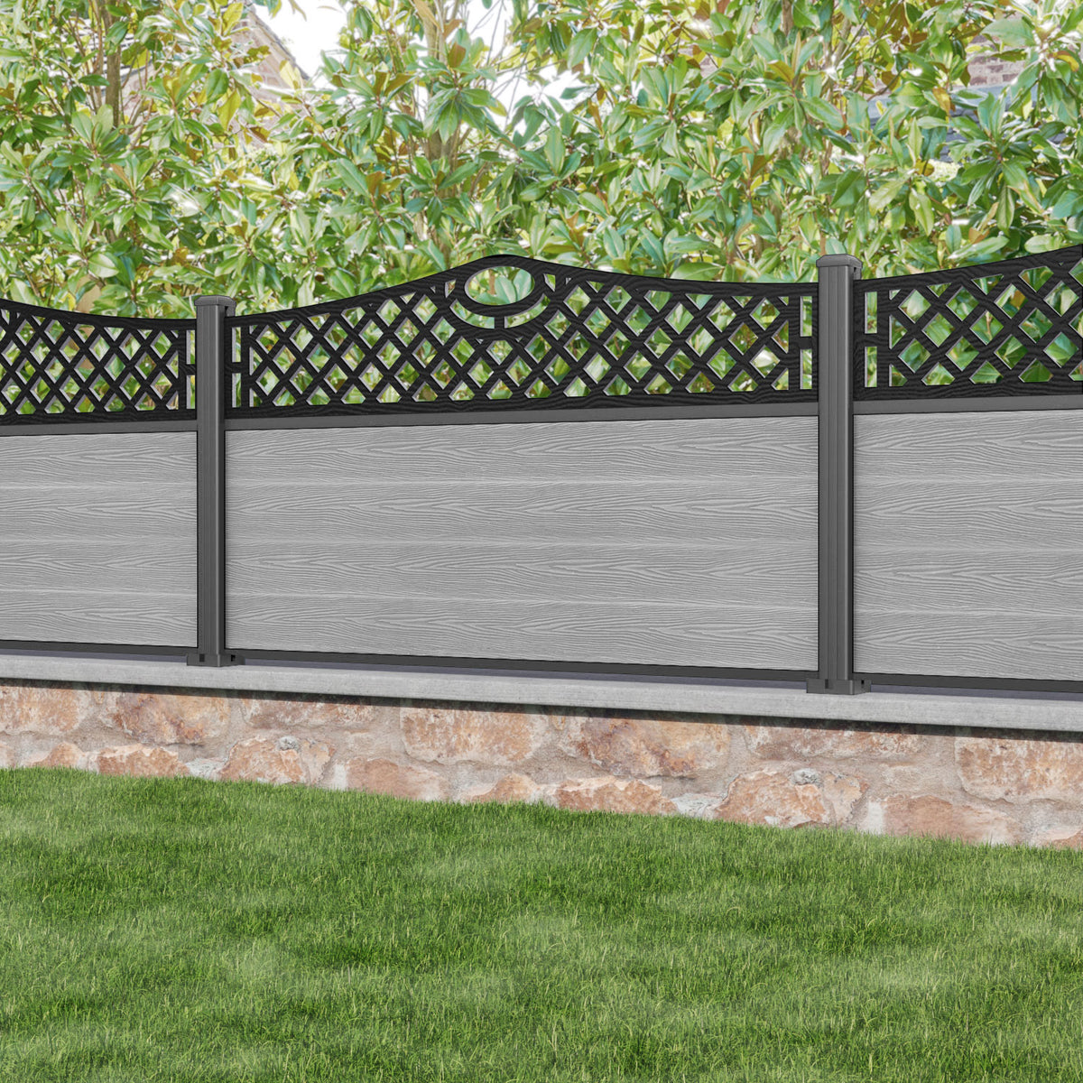 Classic Oxford Curved Top Fence Panel Light Grey - with our aluminium posts
