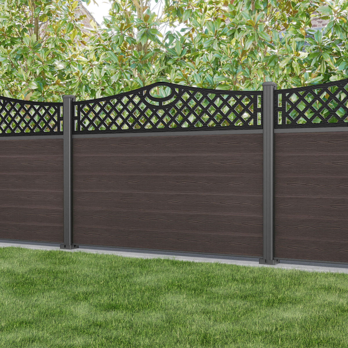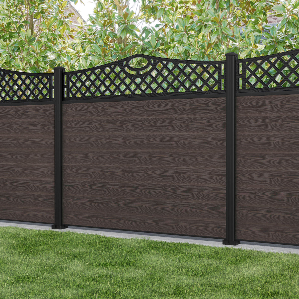 Classic Oxford Curved Top Fence Panel Mid Brown - with our aluminium posts