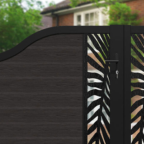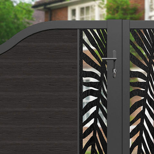 Classic Palm Curved Top Driveway Gate Dark Oak - Middle & End Screen