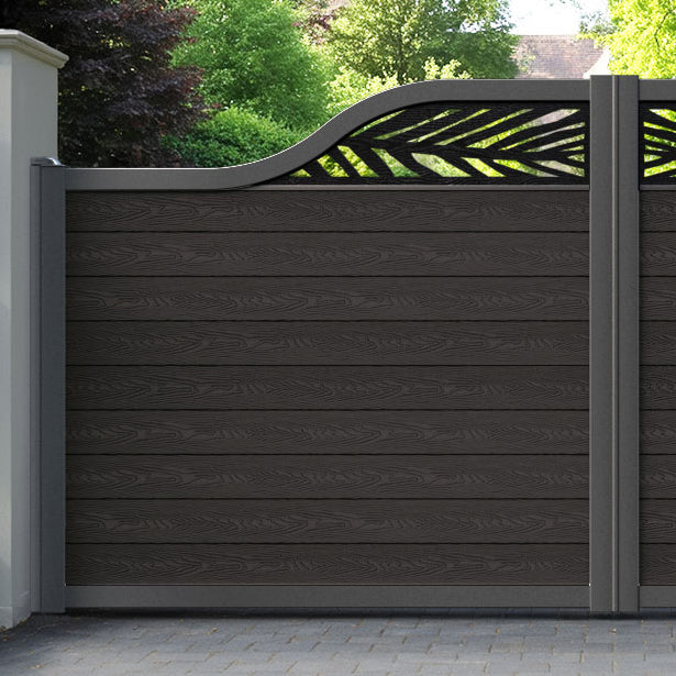 Classic Palm Curved Top Driveway Gate Dark Oak - Top Screen