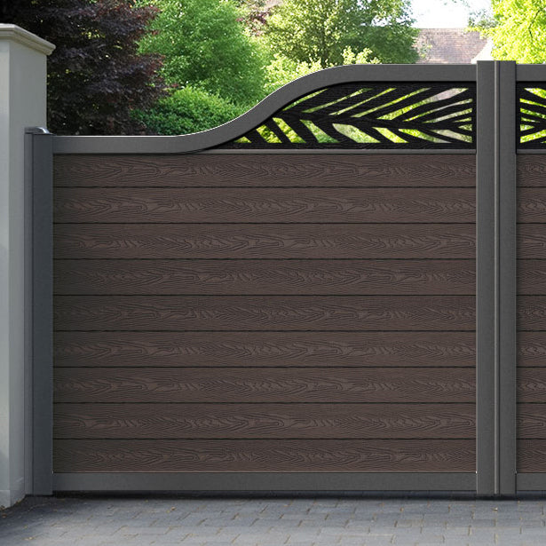 Classic Palm Curved Top Driveway Gate Mid Brown - Top Screen