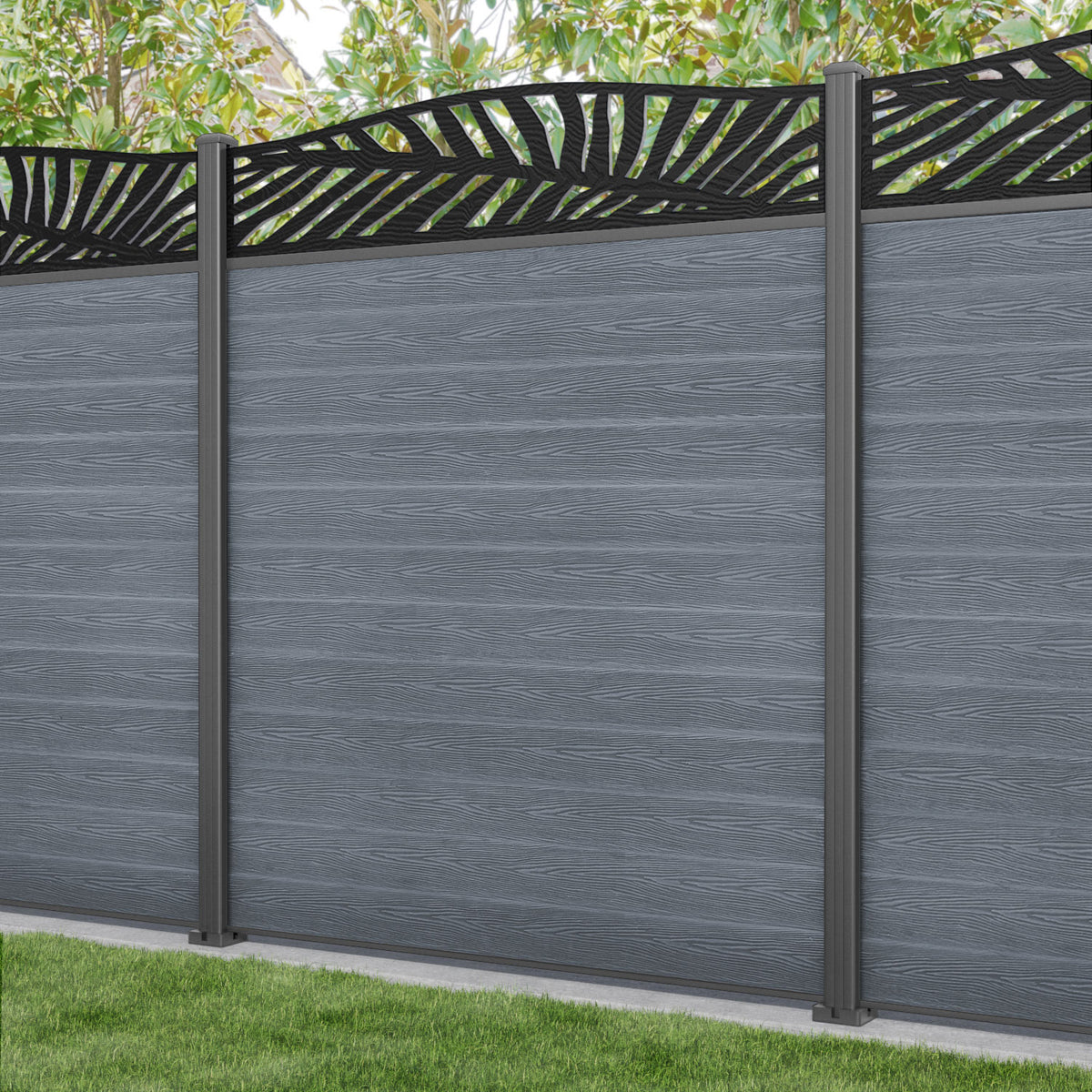 Classic Palm Curved Top Fence Panel Anthracite - with our aluminium posts