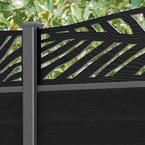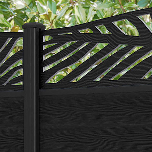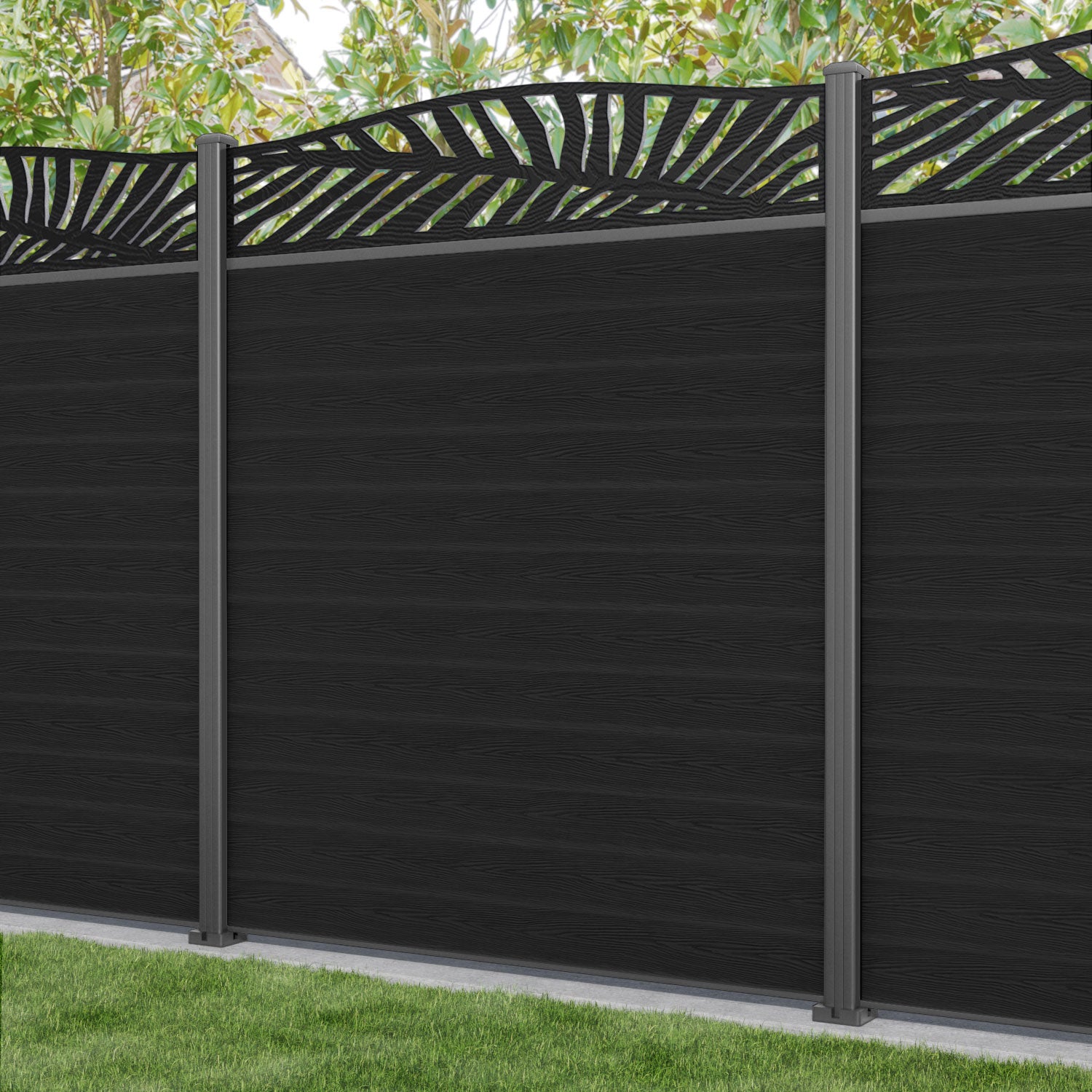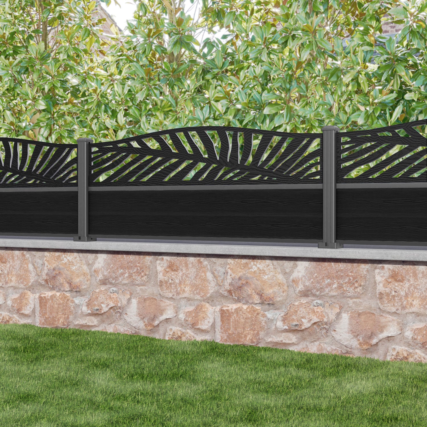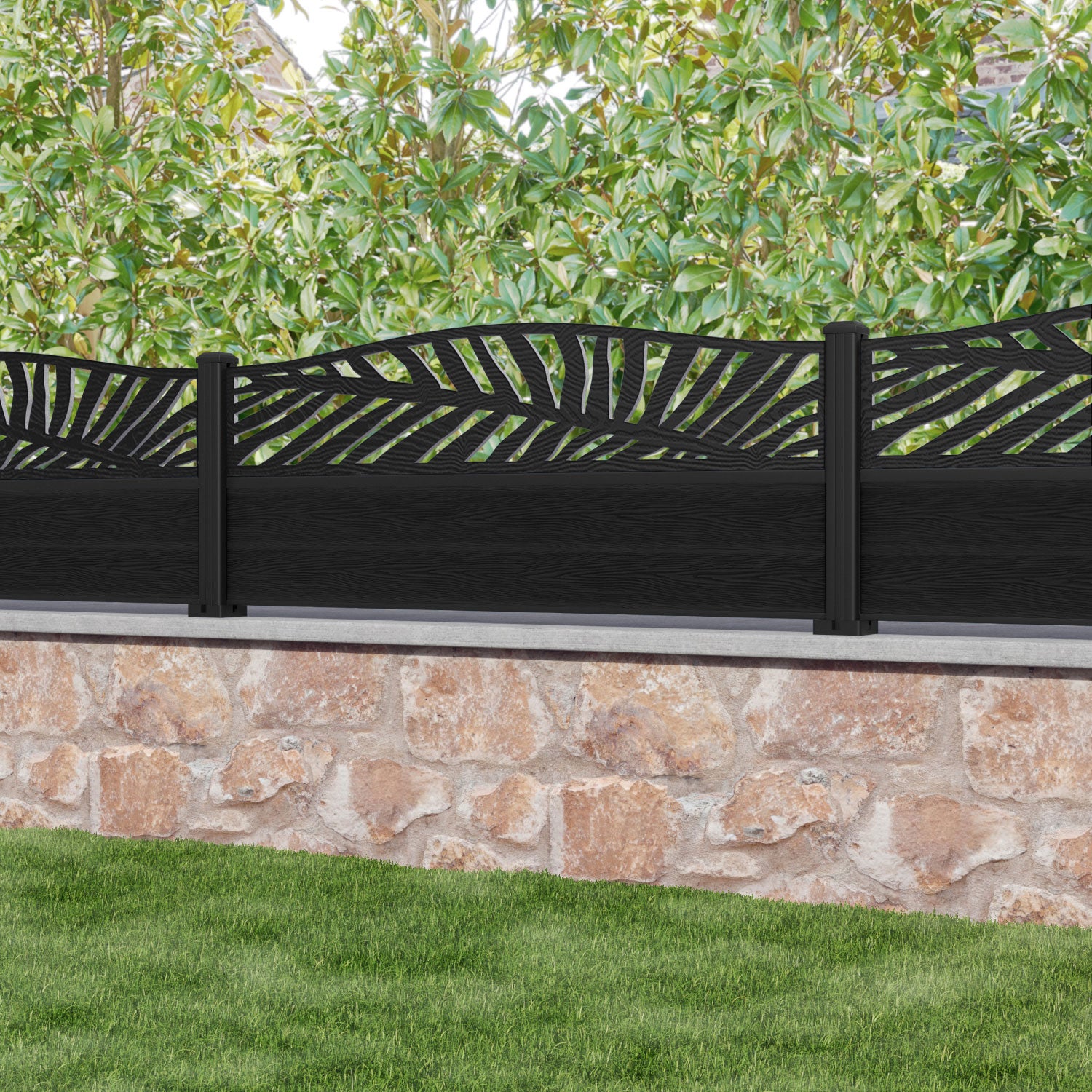 Classic Palm Curved Top Fence Panel Black - with our aluminium posts