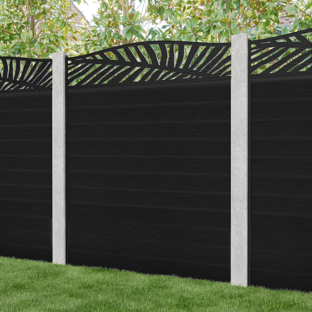 Classic Palm Curved Top Fence Panel Black - for existing concrete posts