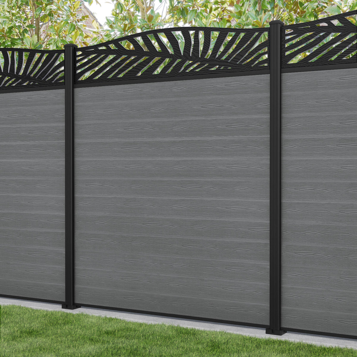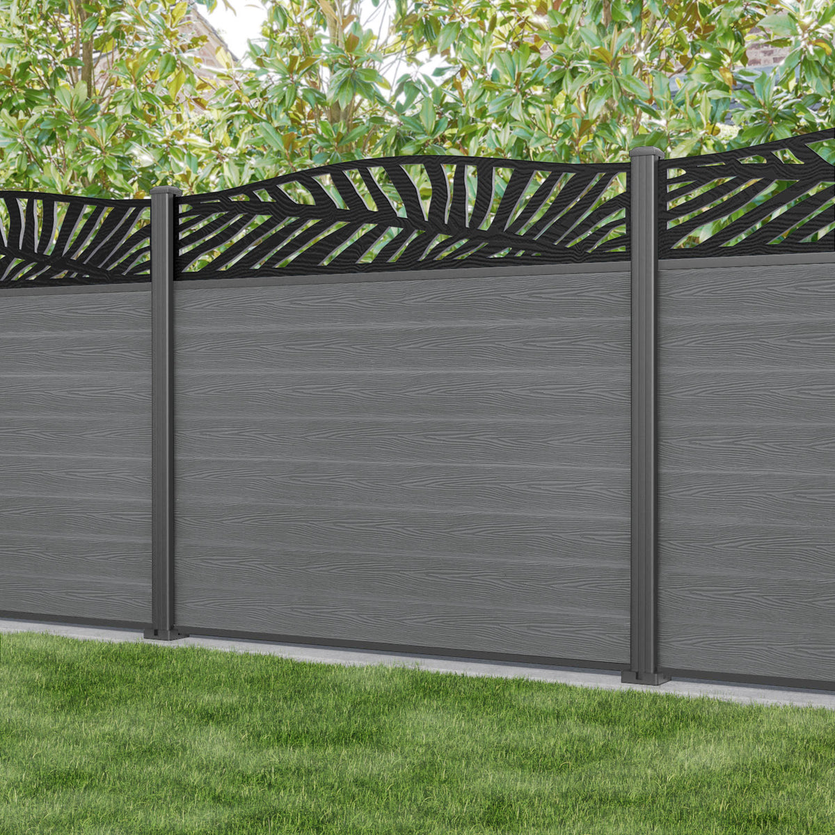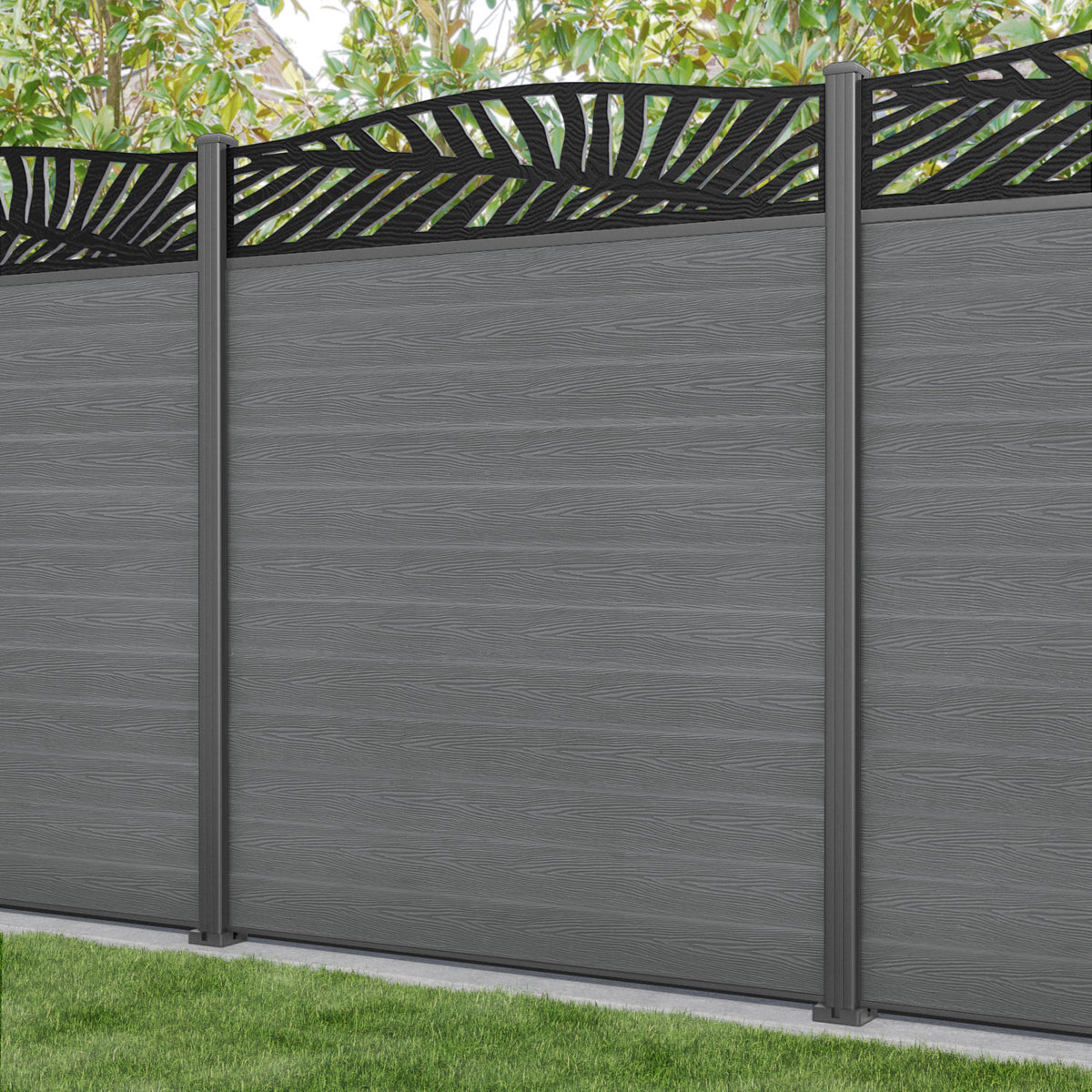 Classic Palm Curved Top Fence Panel Mid Grey - with our aluminium posts