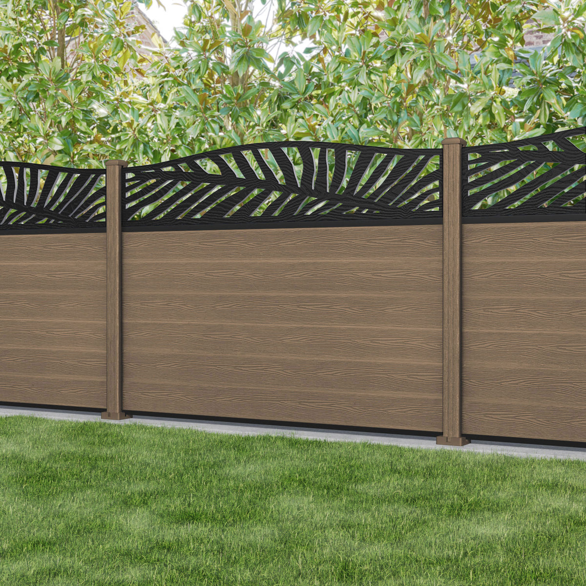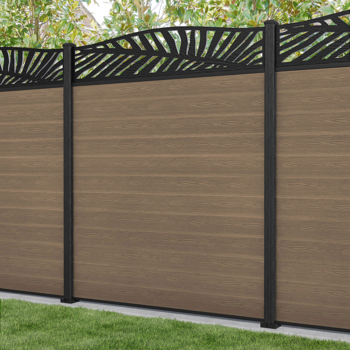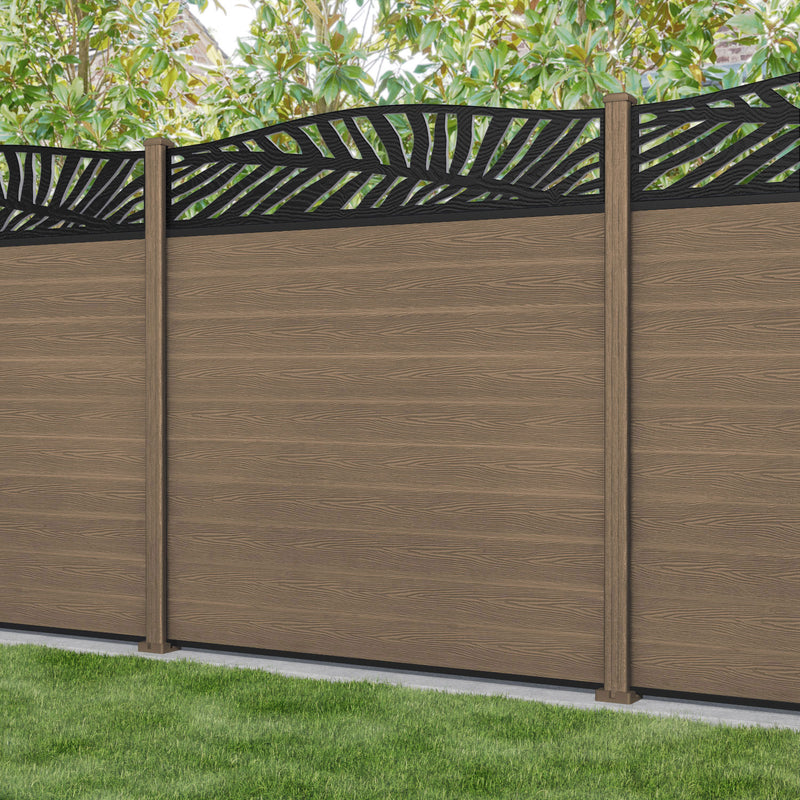 Classic Palm Curved Top Fence Panel Teak - with our composite posts