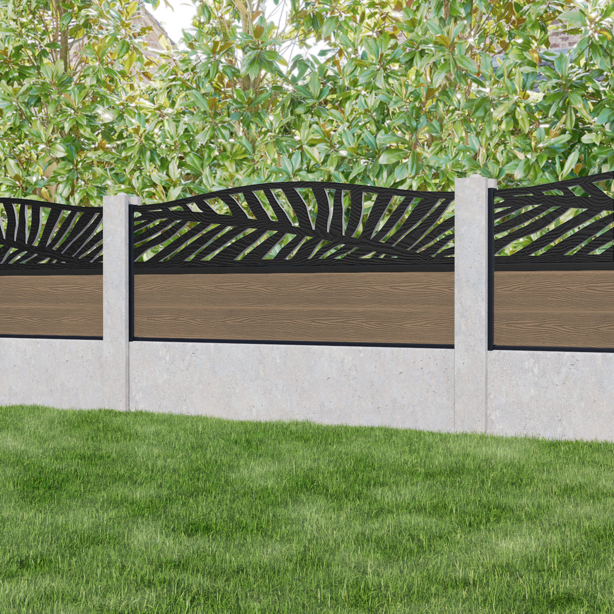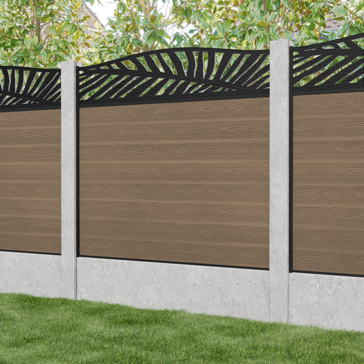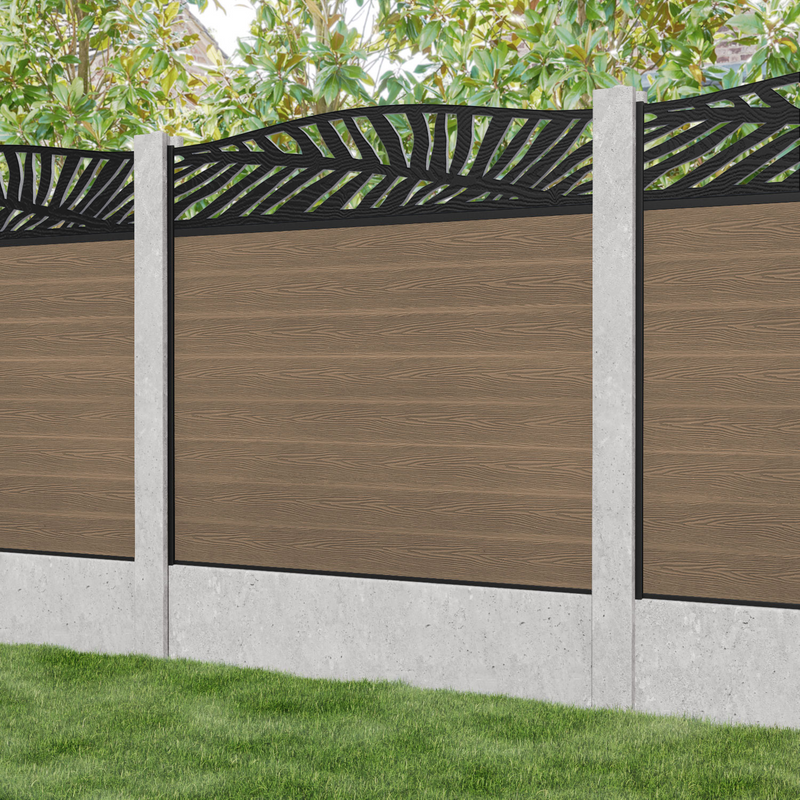 Classic Palm Curved Top Fence Panel Teak - for existing concrete posts