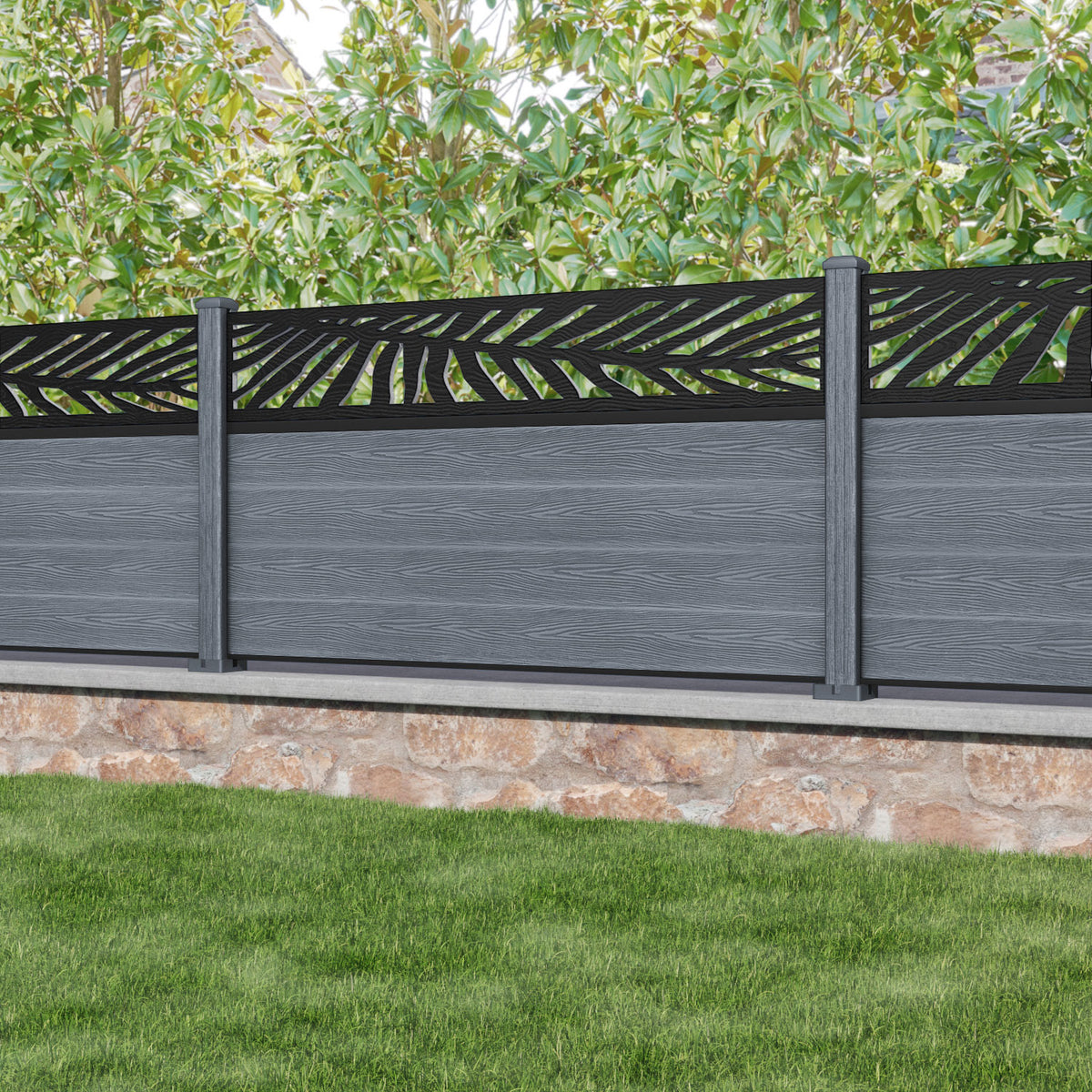 Classic Palm Fence Panel Anthracite - with our composite posts