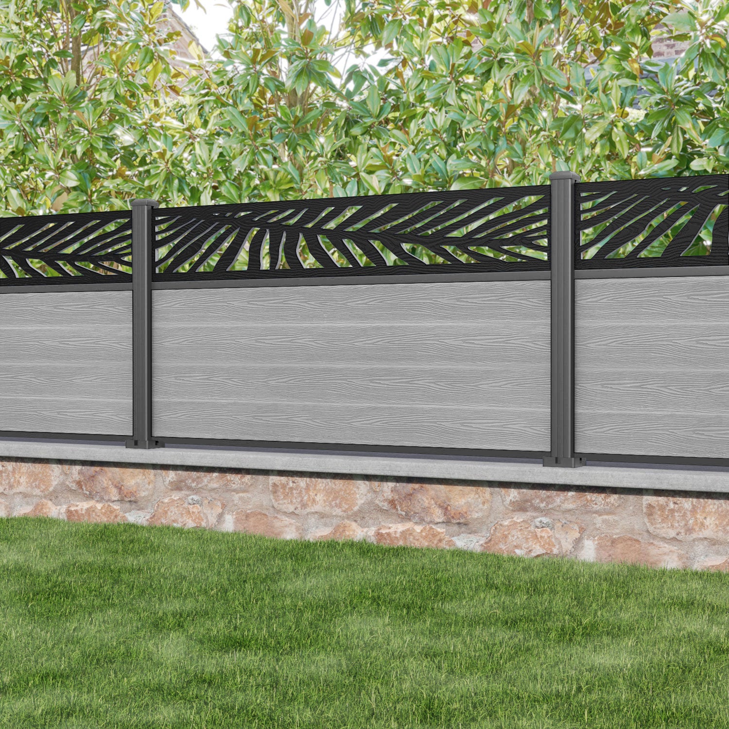 Classic Palm Fence Panel Light Grey - with our aluminium posts