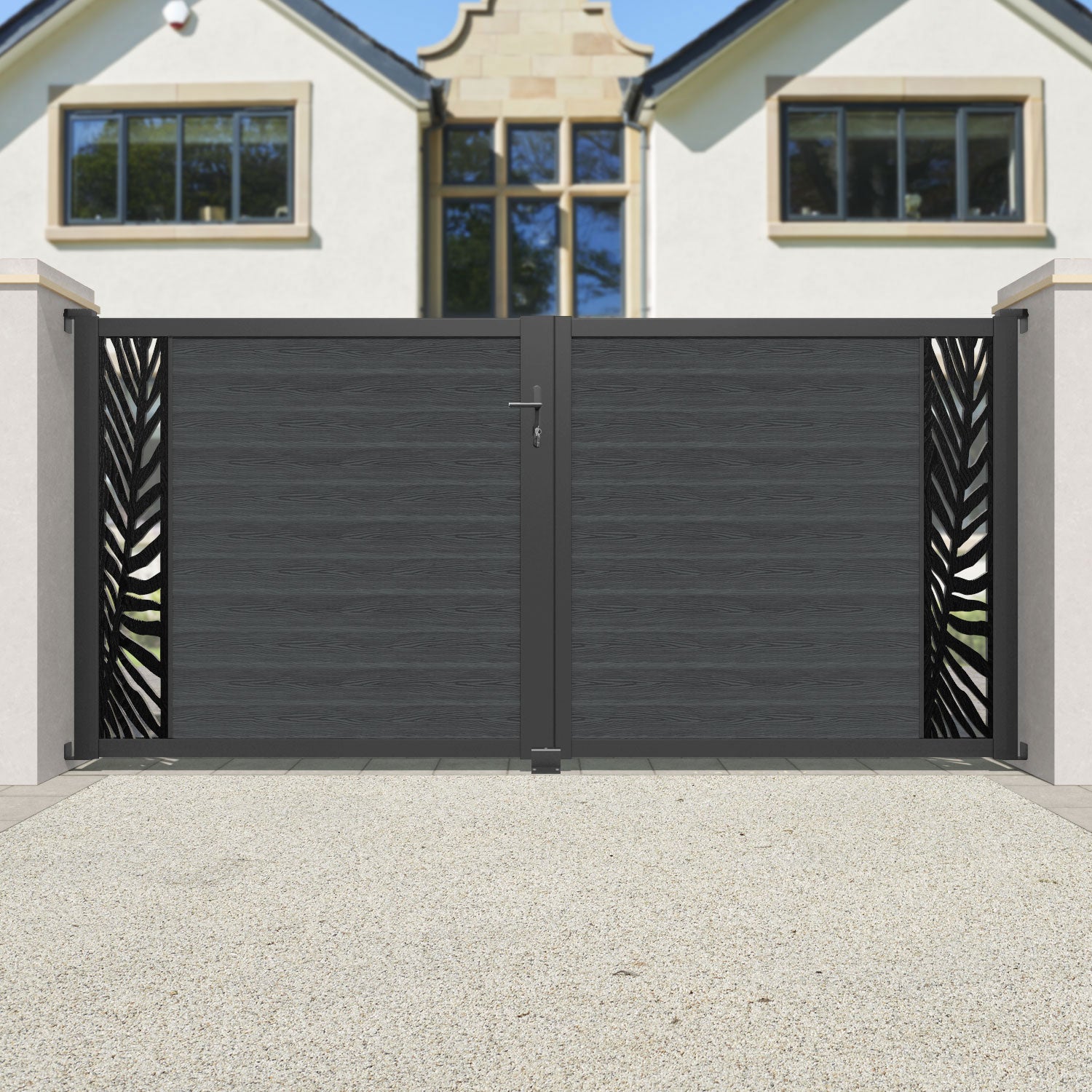 Classic Palm Straight Top Driveway Gate Dark Grey - End Screen