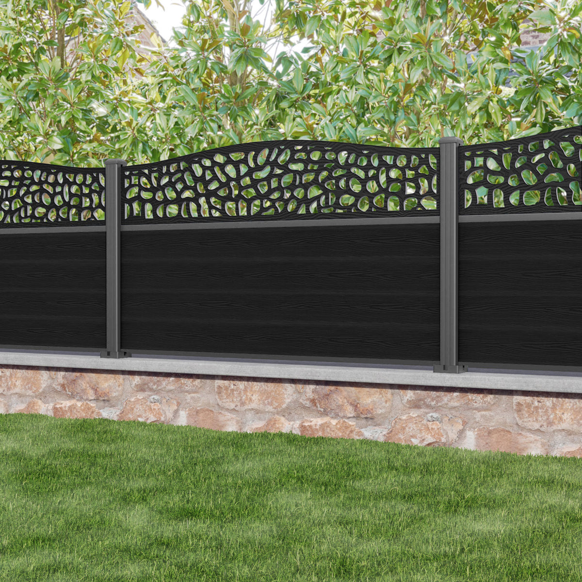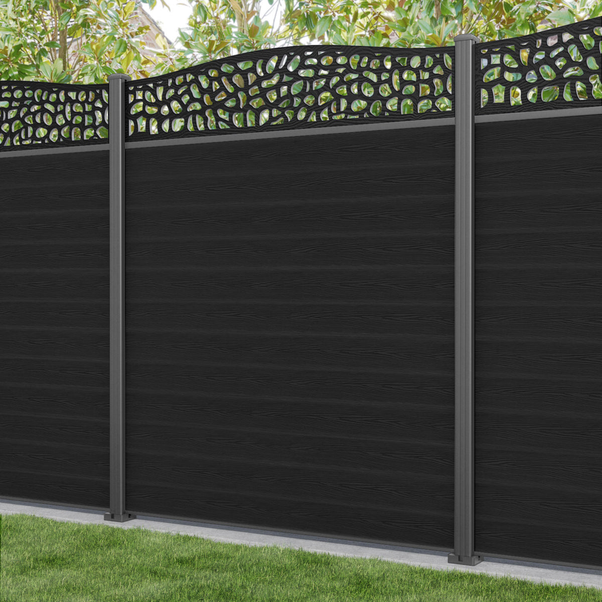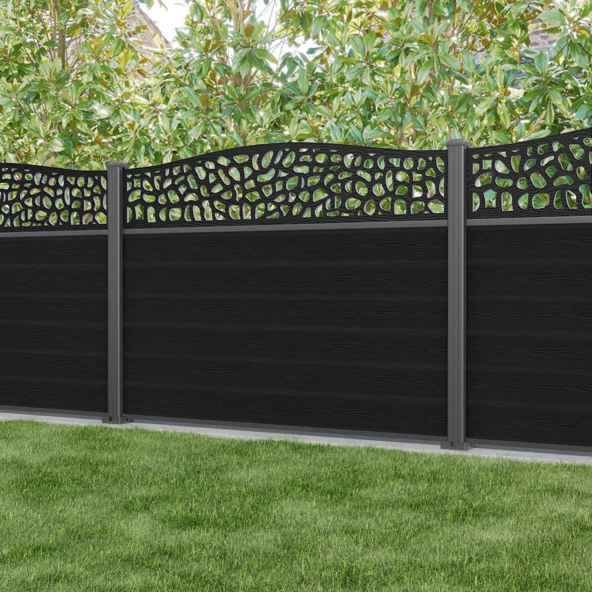 Classic Pebble Curved Top Fence Panel Black - with our aluminium posts