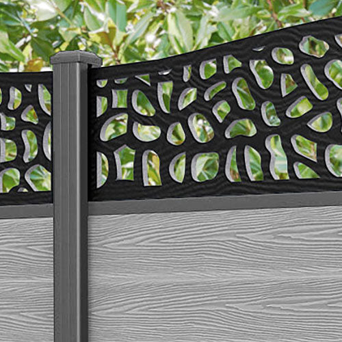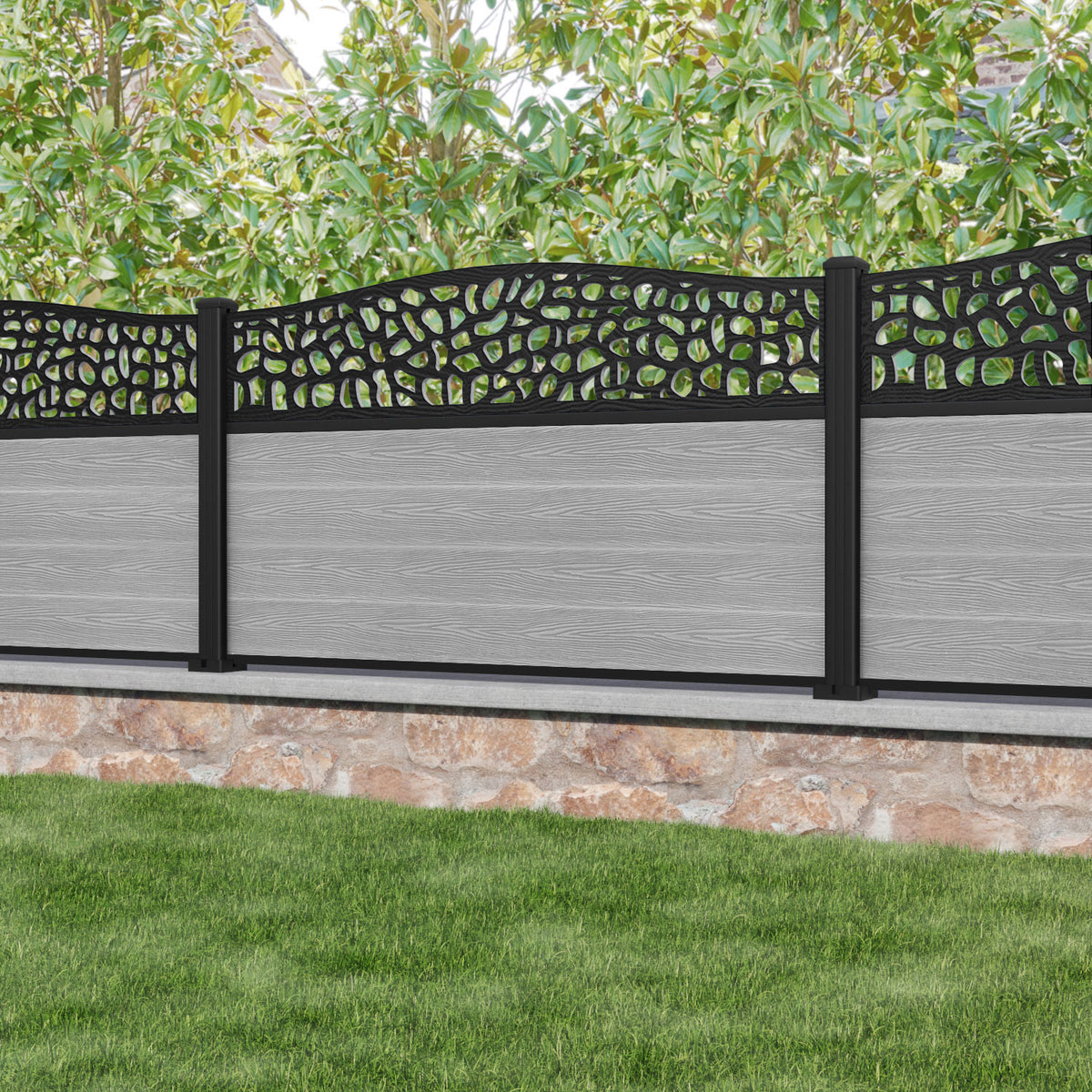 Classic Pebble Curved Top Fence Panel Light Grey - with our aluminium posts