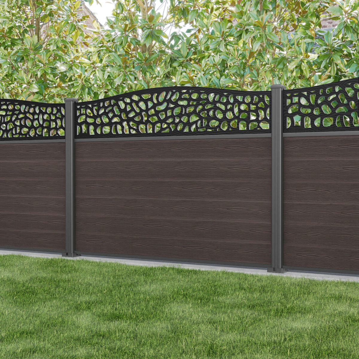 Classic Pebble Curved Top Fence Panel Mid Brown - with our aluminium posts