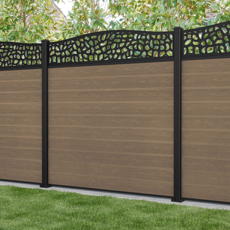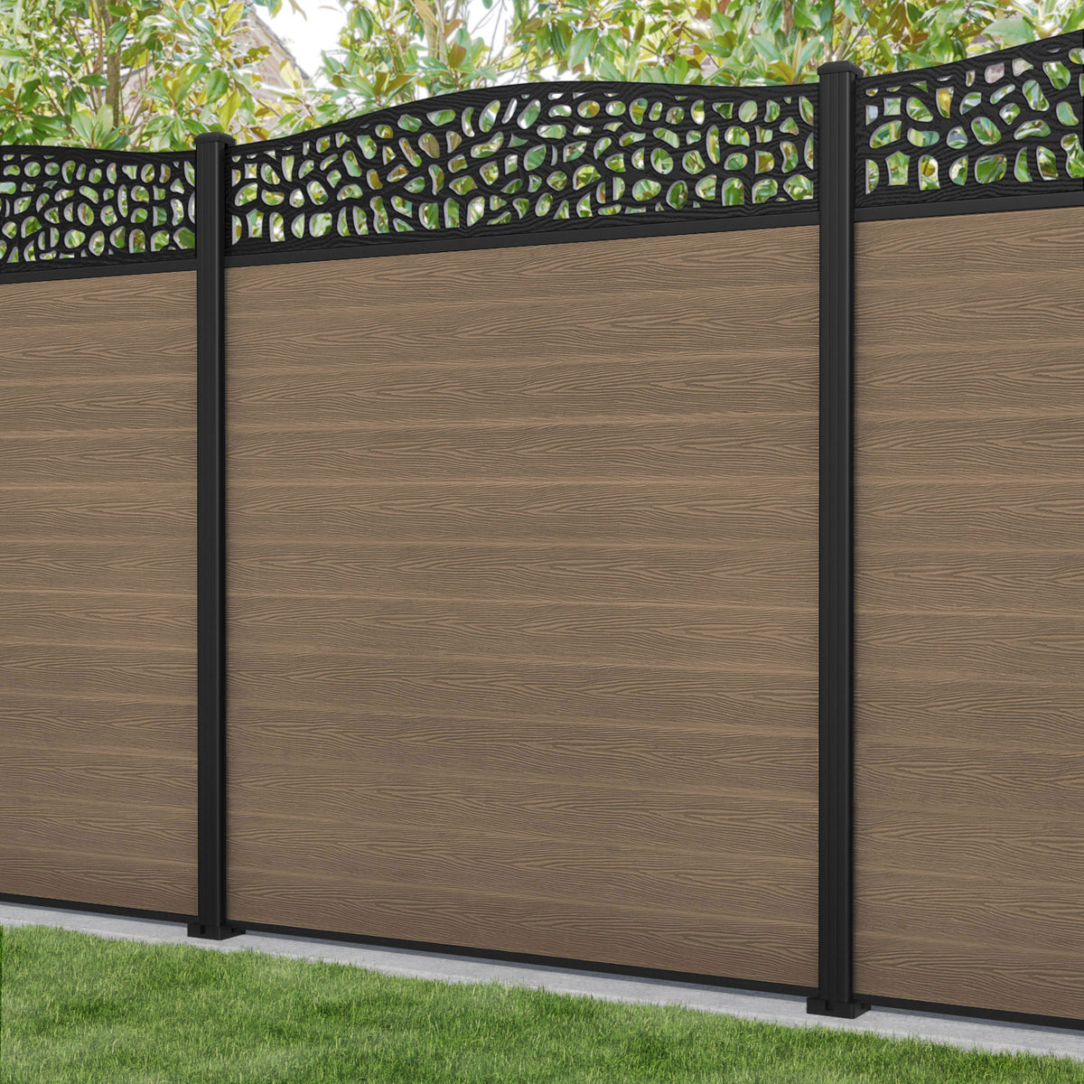 Classic Pebble Curved Top Fence Panel Teak - with our aluminium posts