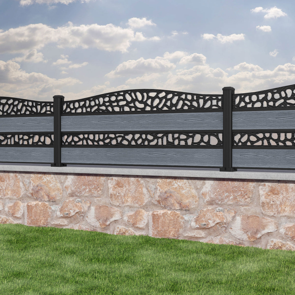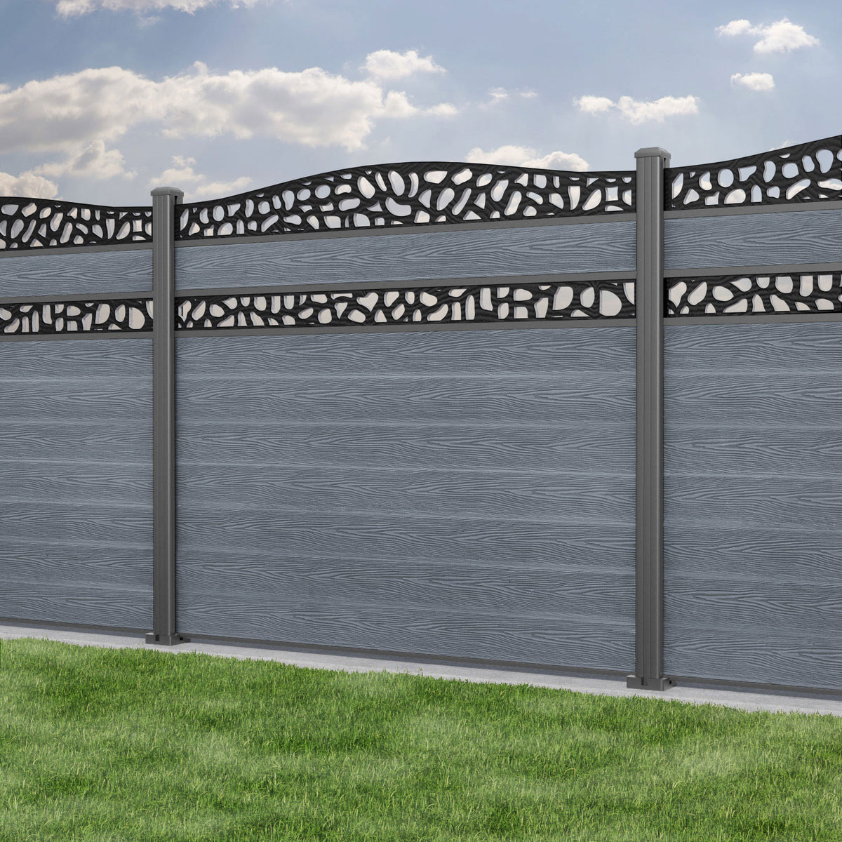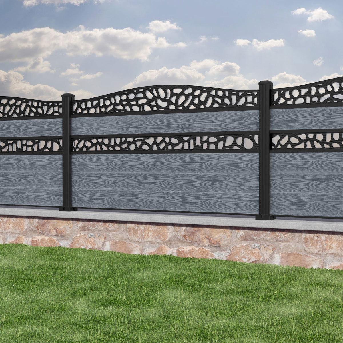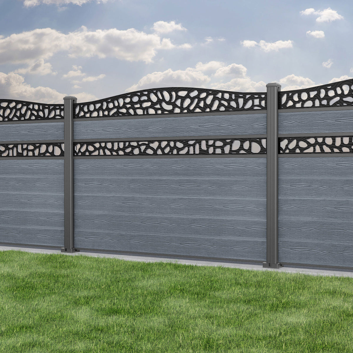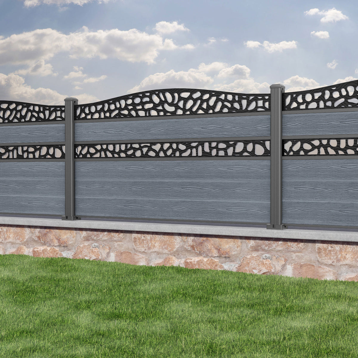 Classic Pebble Curved Top Split Screen Fence Panel Anthracite - with our aluminium posts
