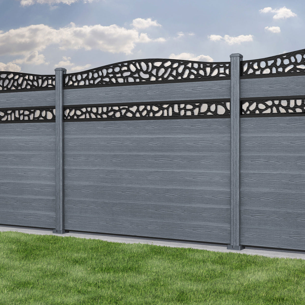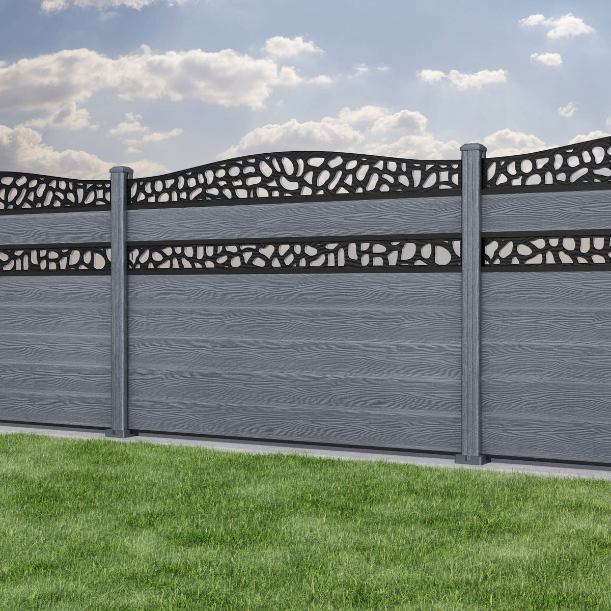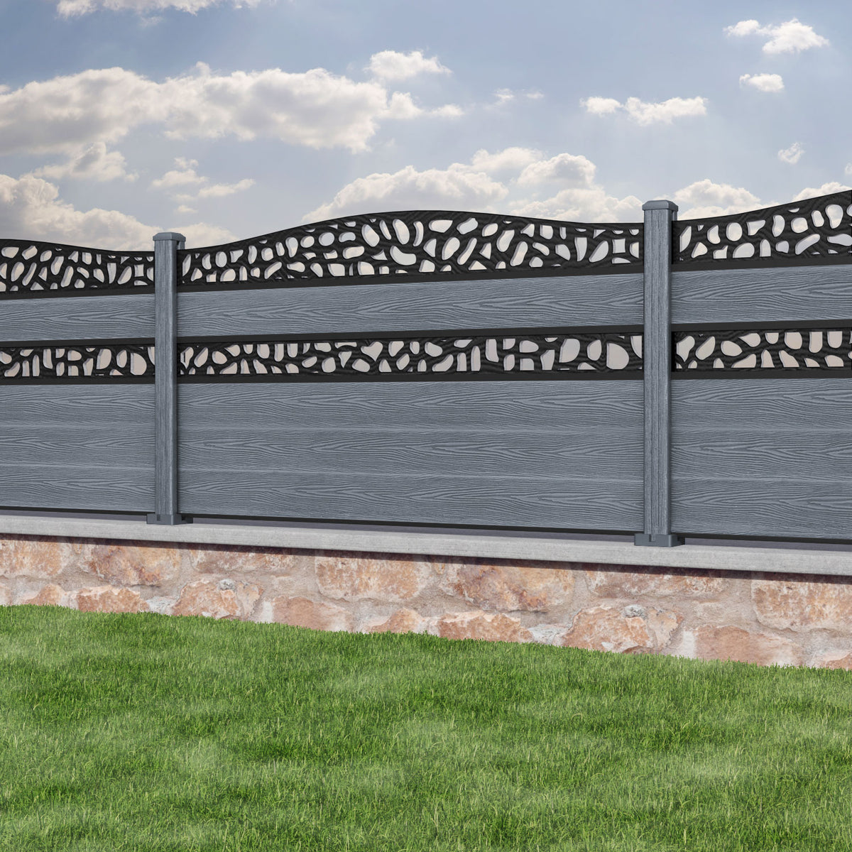 Classic Pebble Curved Top Split Screen Fence Panel Anthracite - with our composite posts