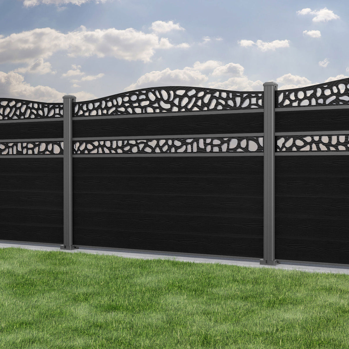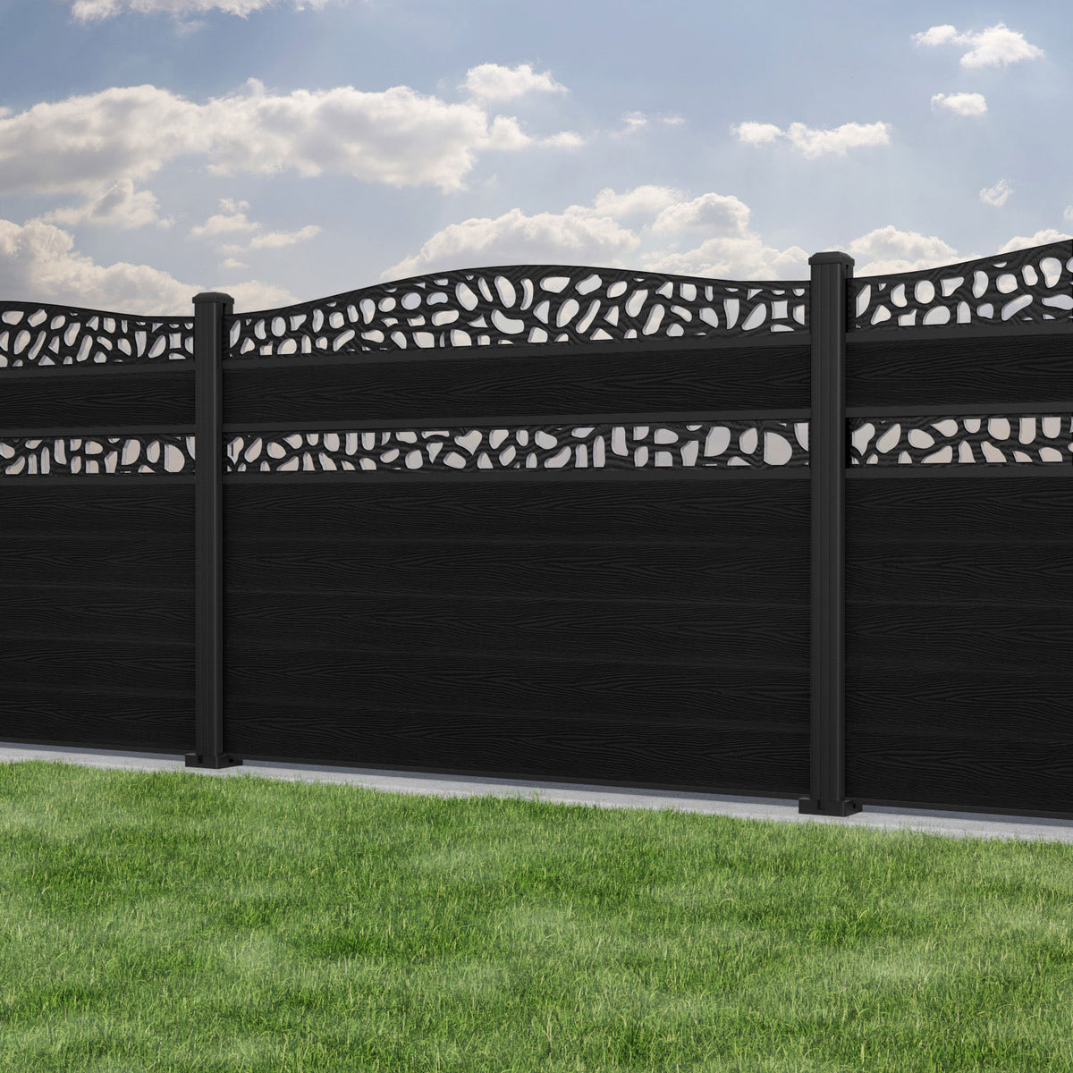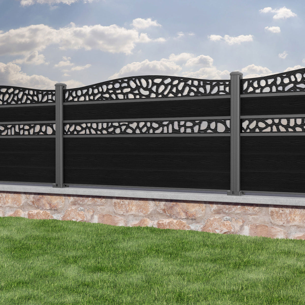 Classic Pebble Curved Top Split Screen Fence Panel Black - with our aluminium posts
