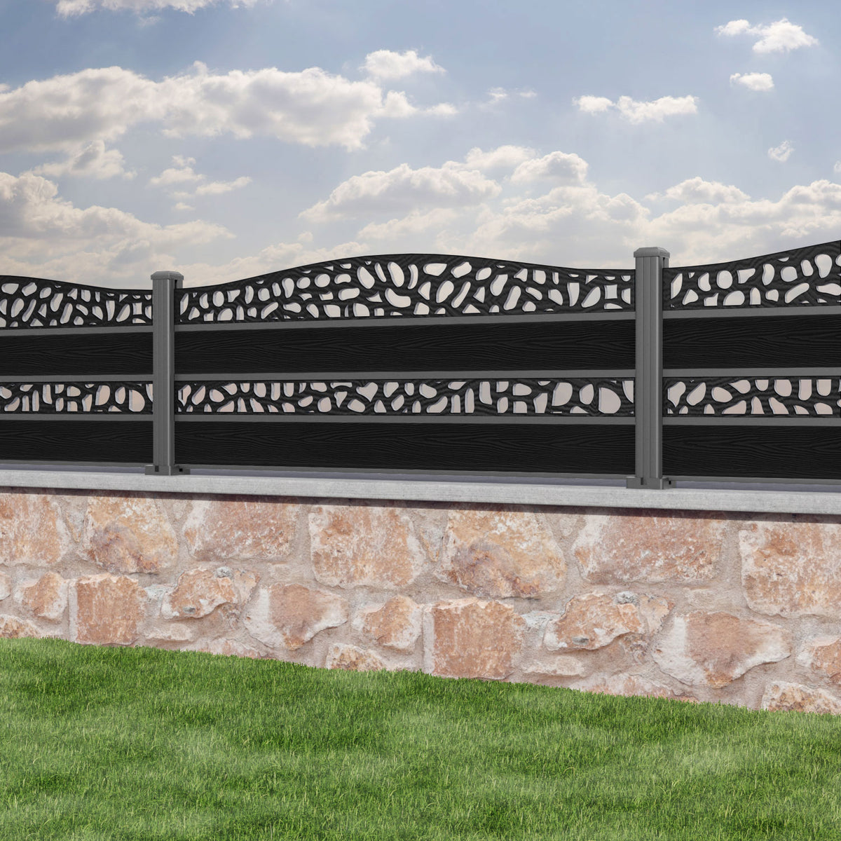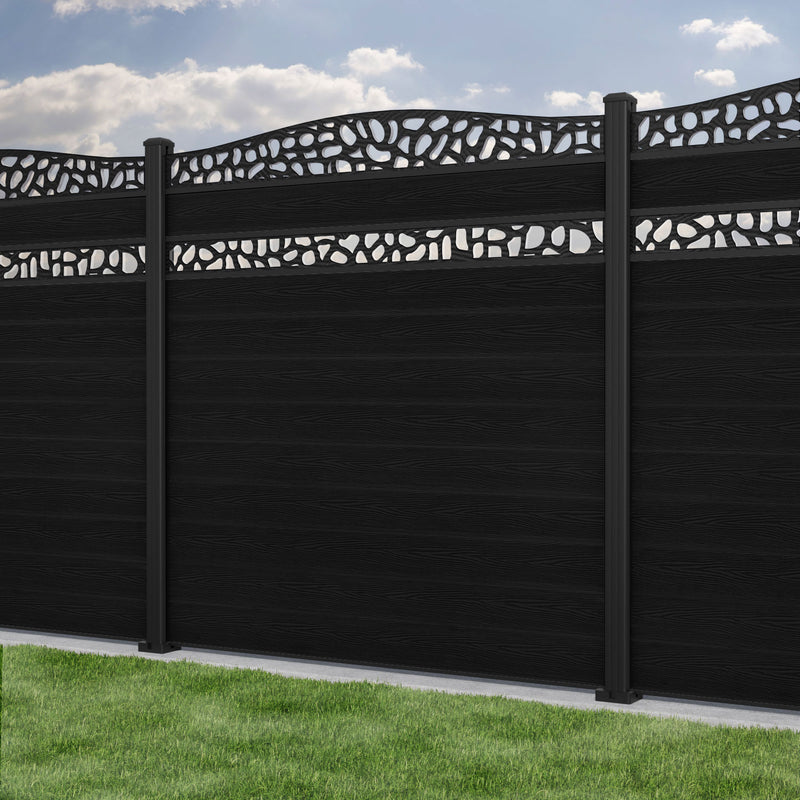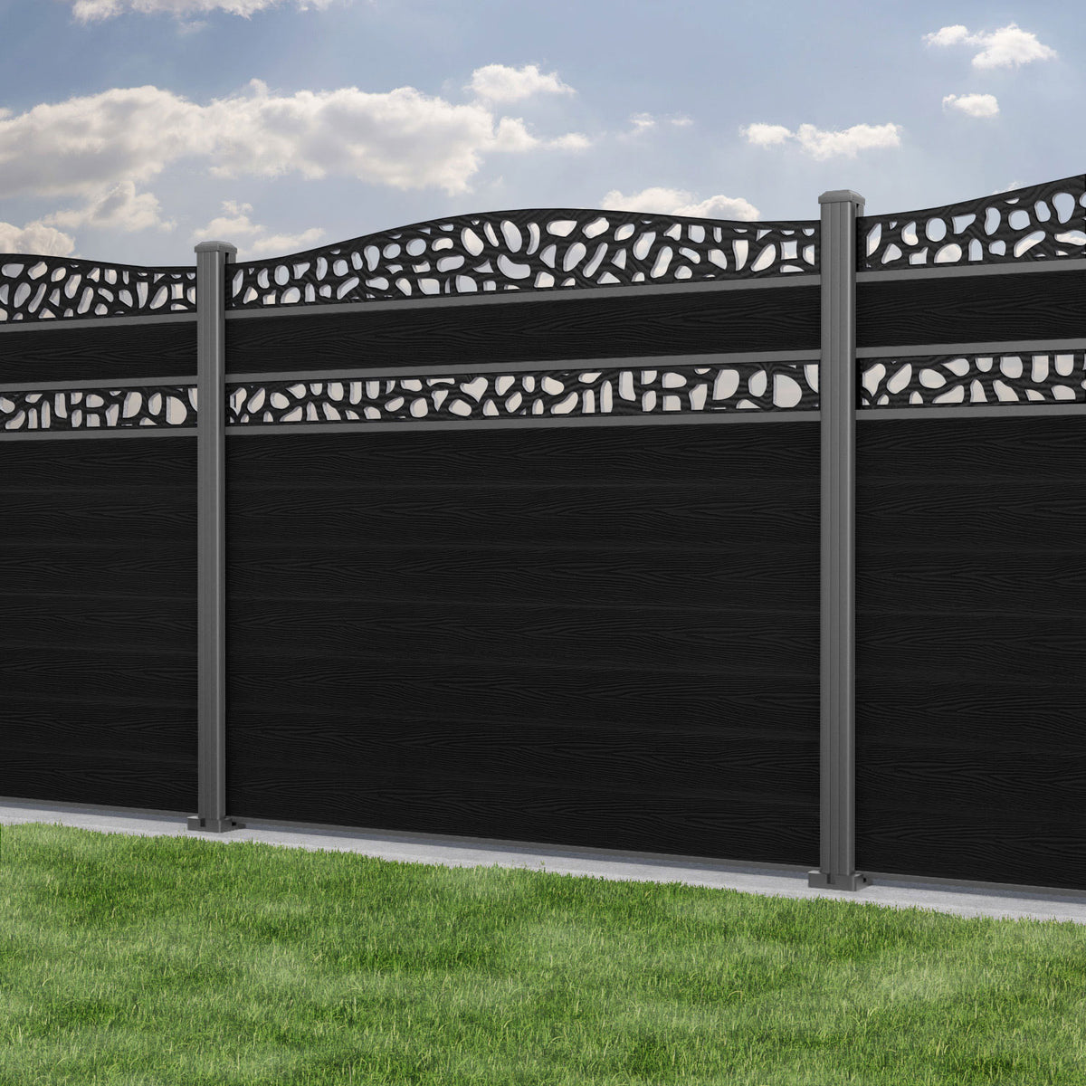 Classic Pebble Curved Top Split Screen Fence Panel Black - with our aluminium posts