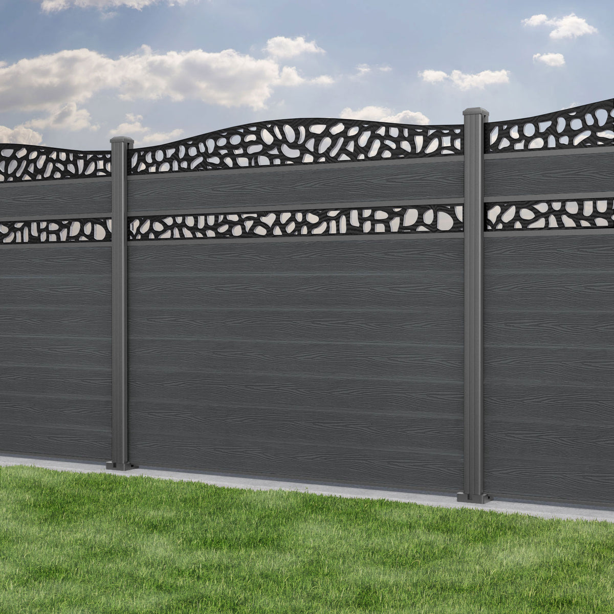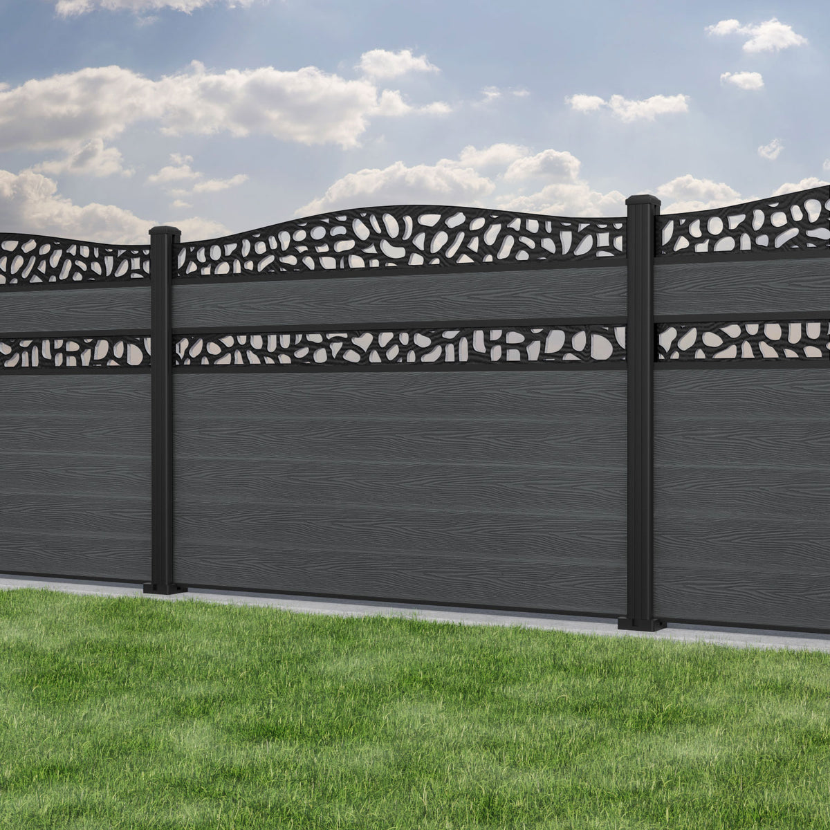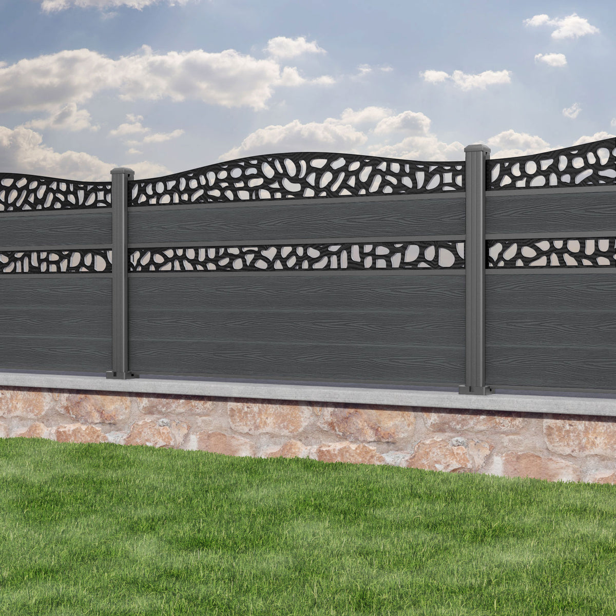Classic Pebble Curved Top Split Screen Fence Panel Dark Grey - with our aluminium posts