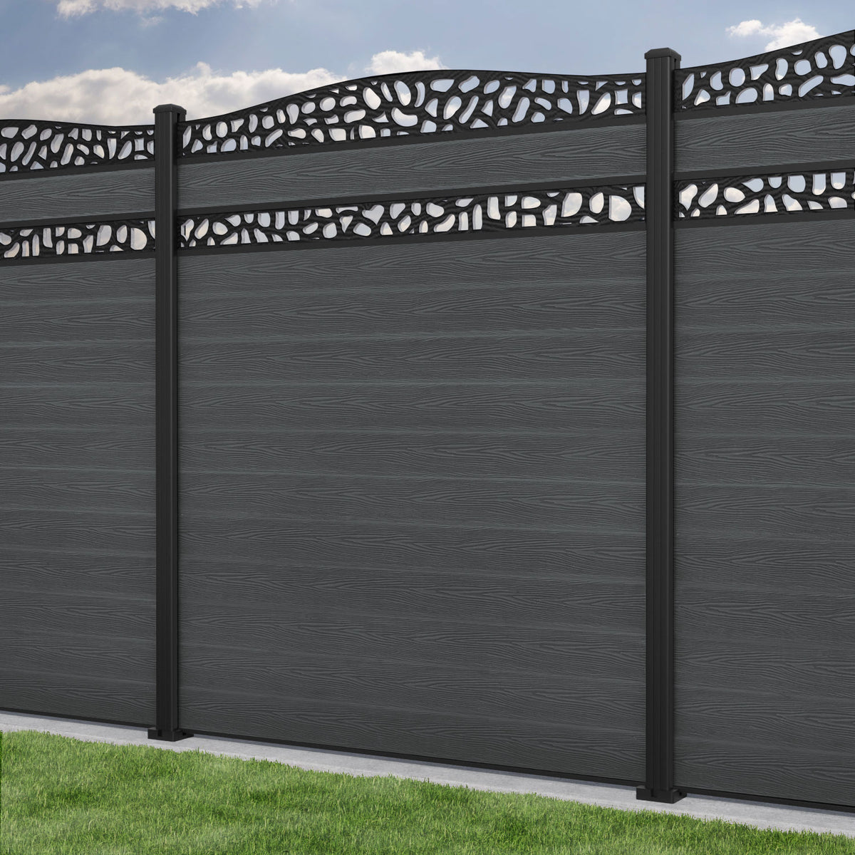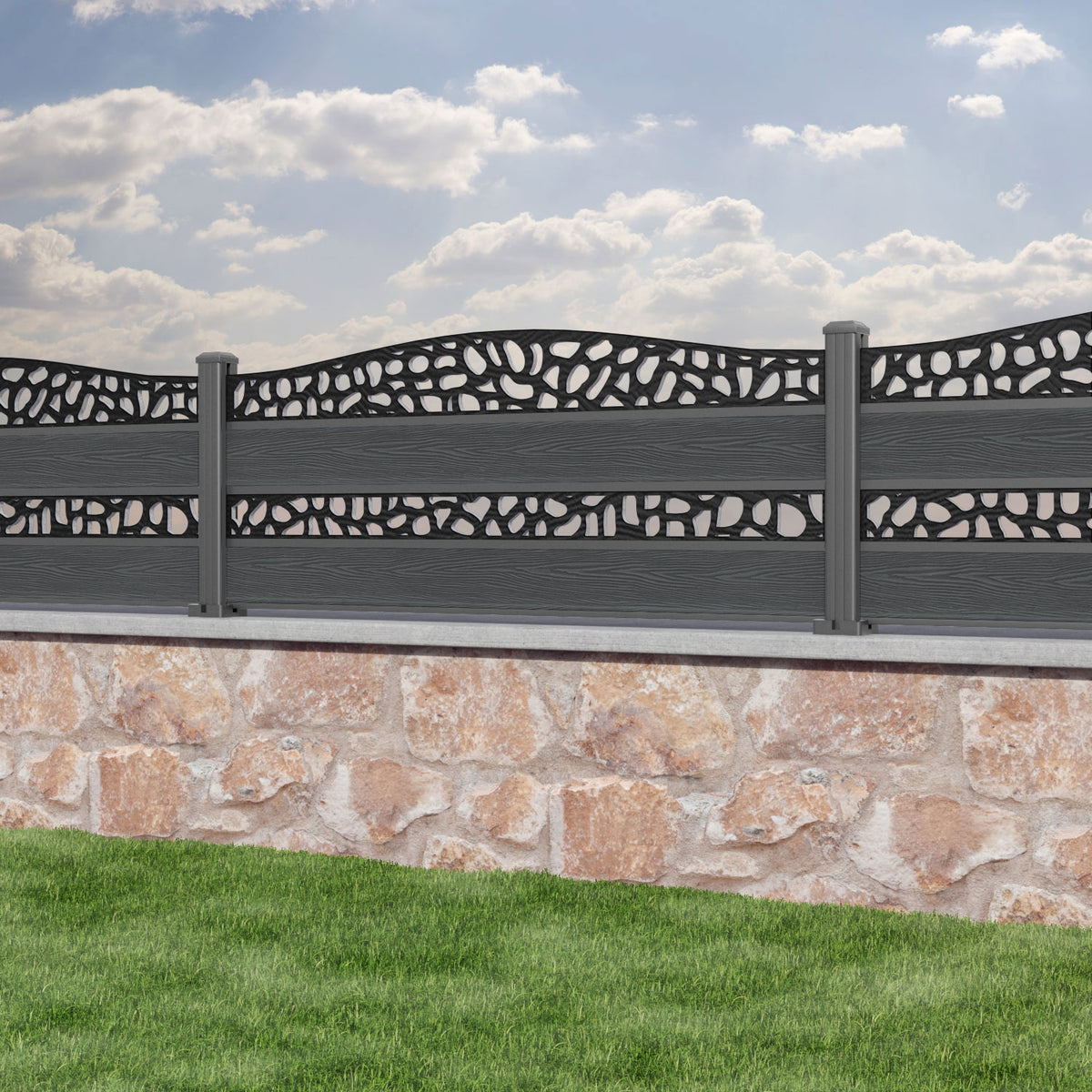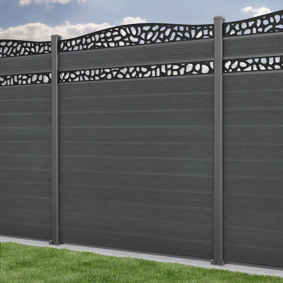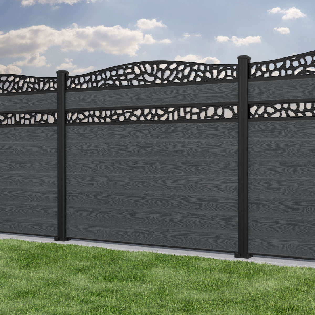 Classic Pebble Curved Top Split Screen Fence Panel Dark Grey - with our aluminium posts