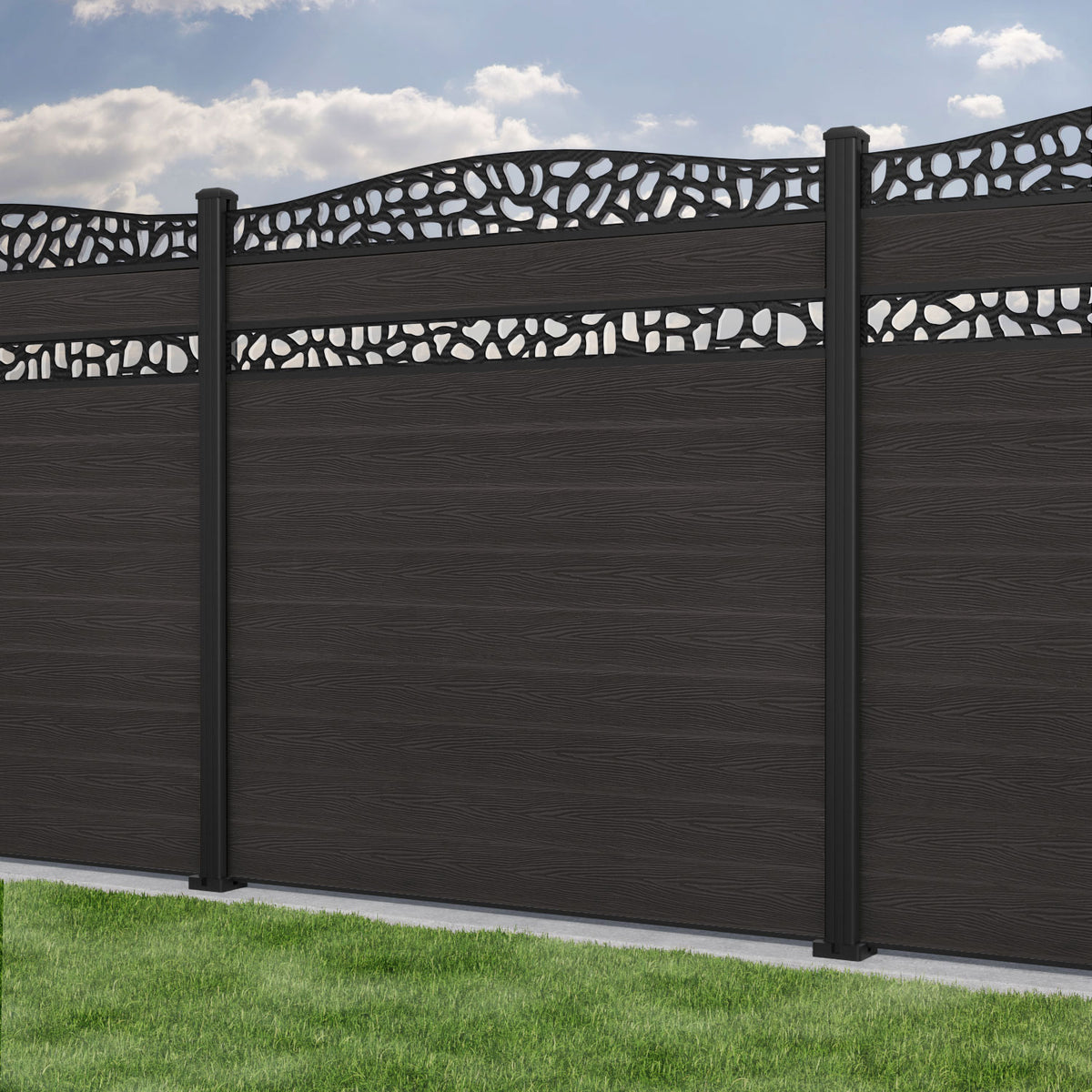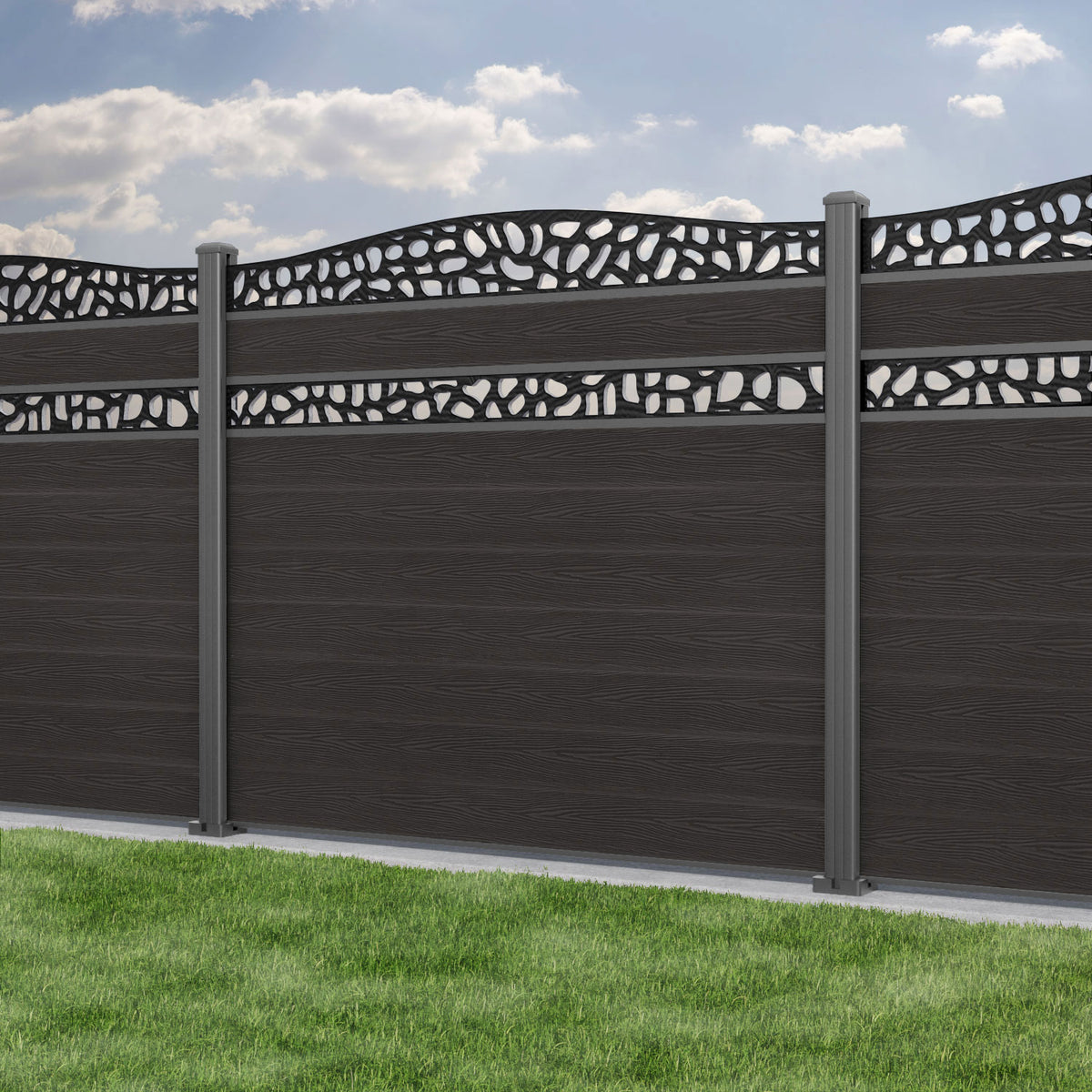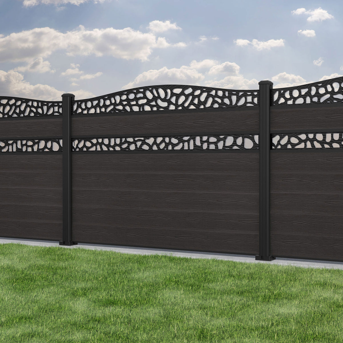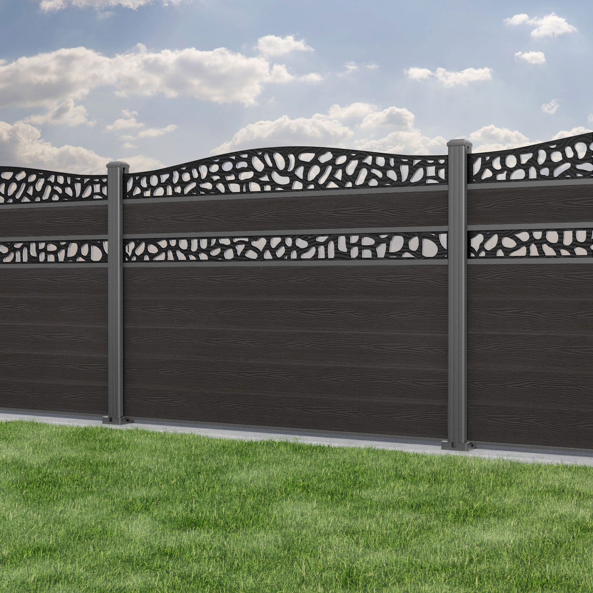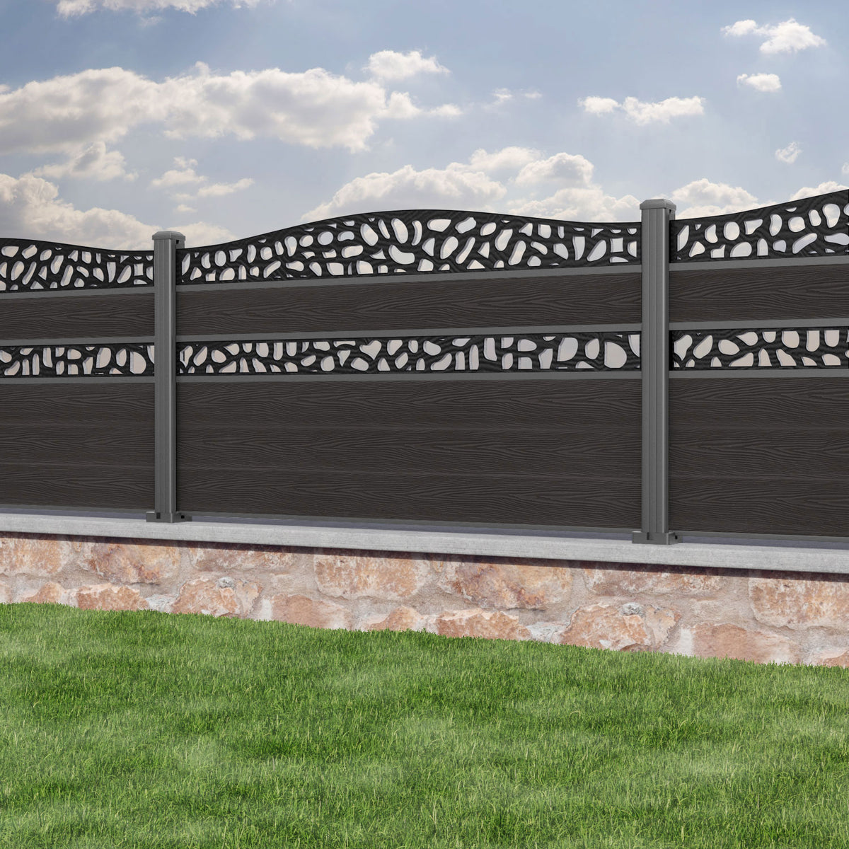 Classic Pebble Curved Top Split Screen Fence Panel Dark Oak - with our aluminium posts