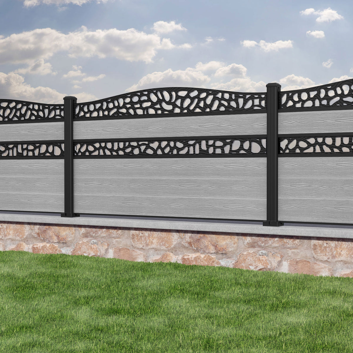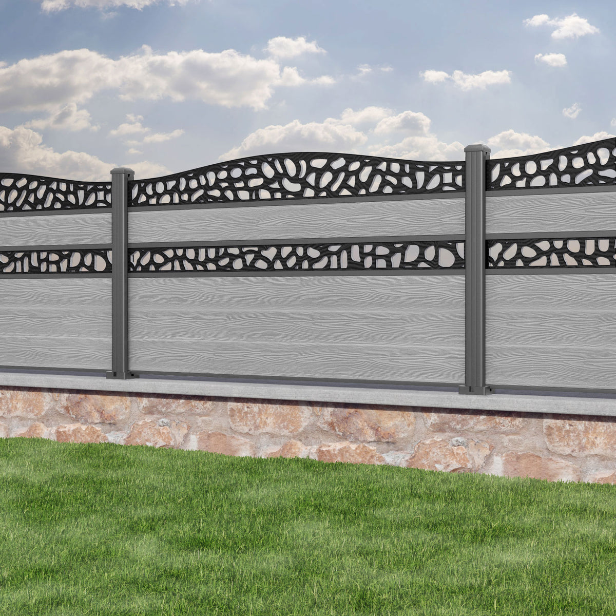 Classic Pebble Curved Top Split Screen Fence Panel Light Grey - with our aluminium posts