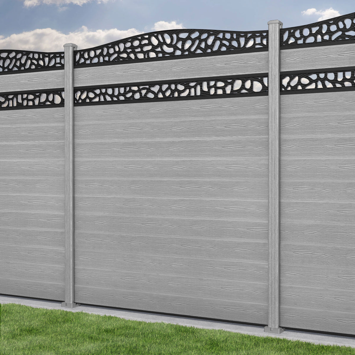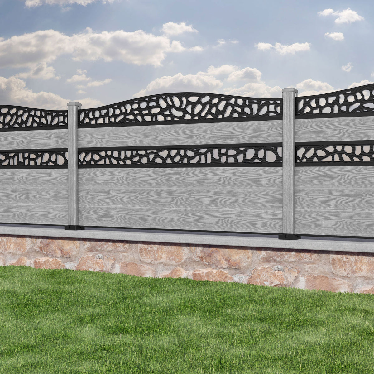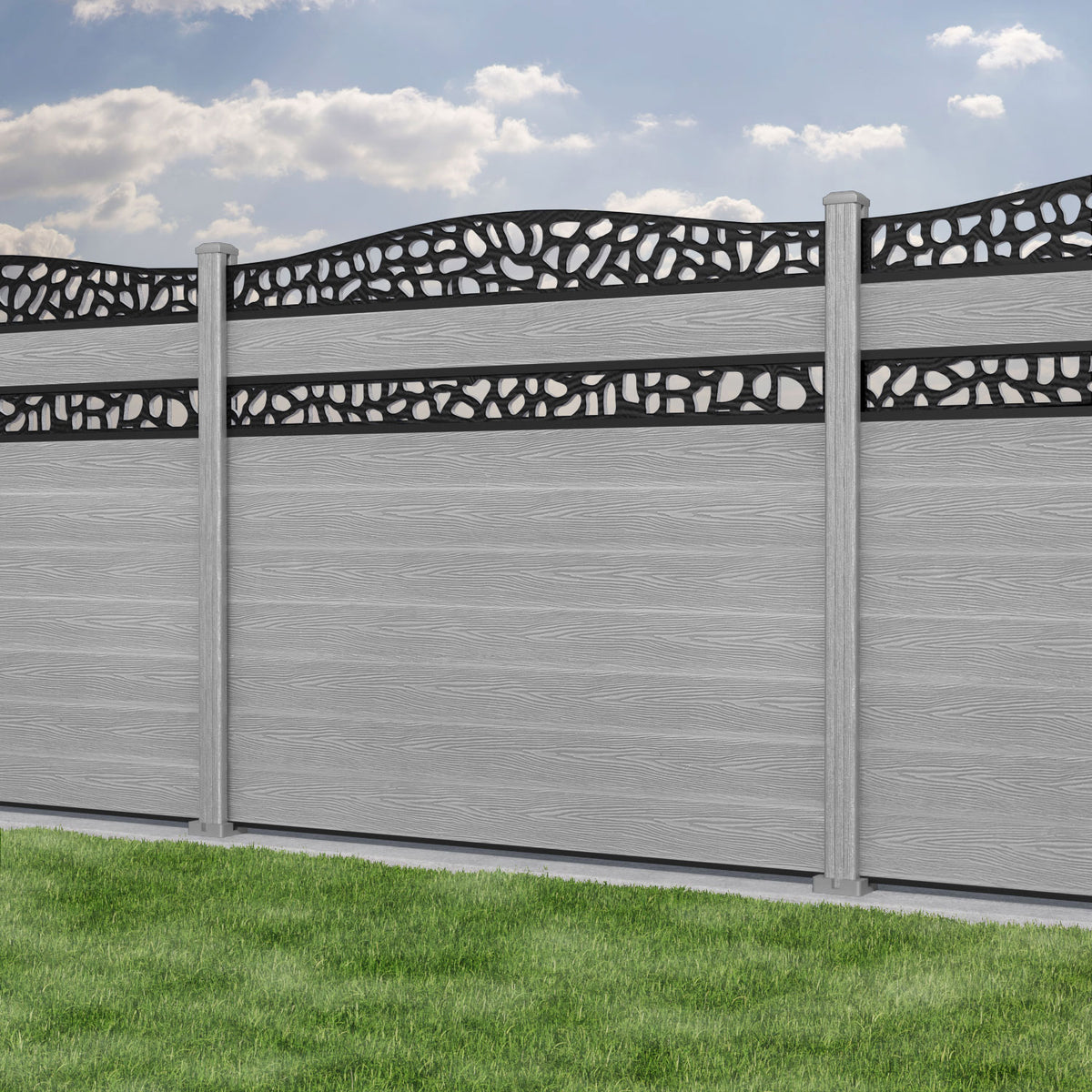 Classic Pebble Curved Top Split Screen Fence Panel Light Grey - with our composite posts
