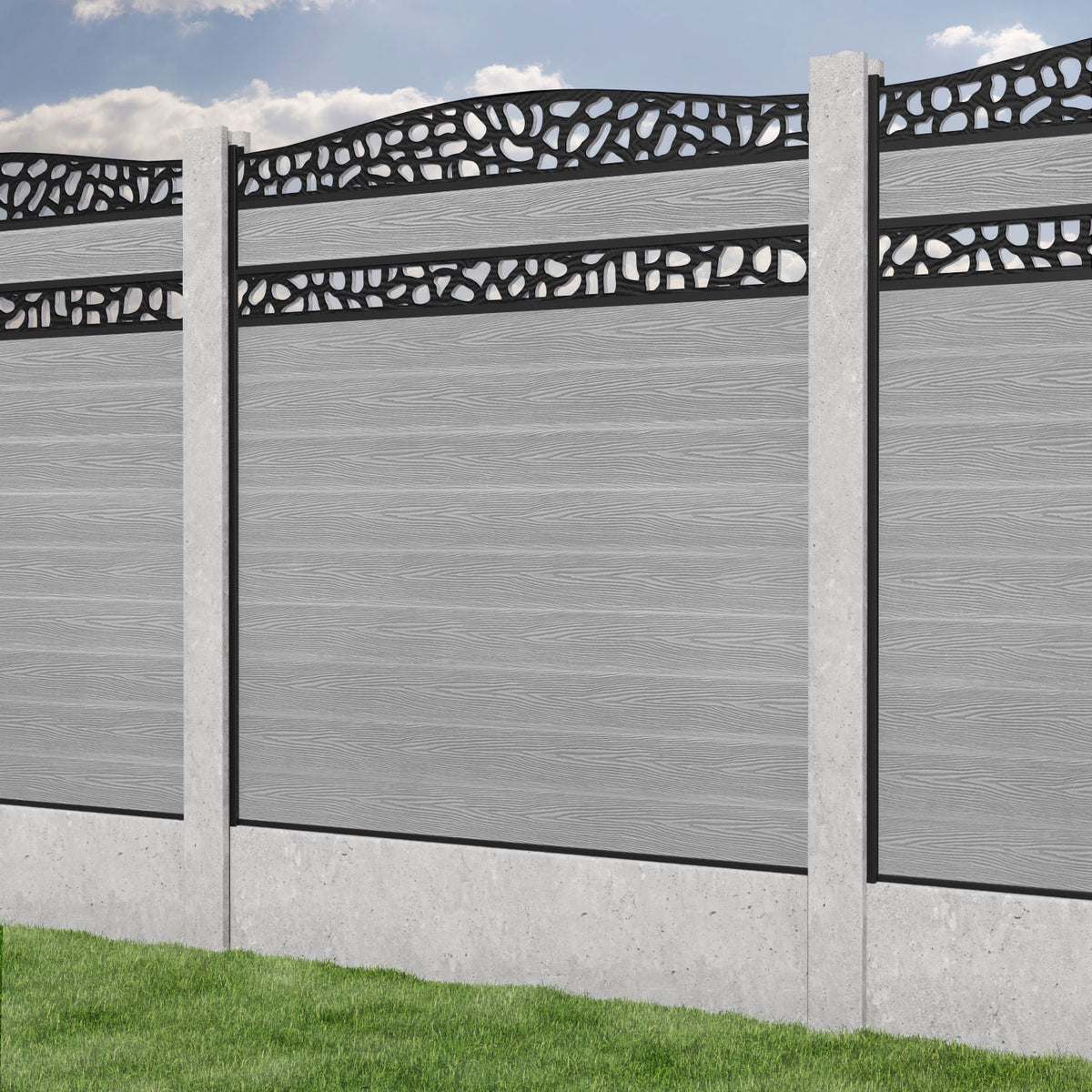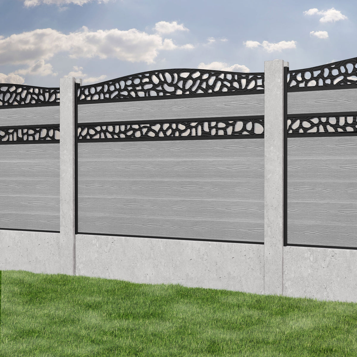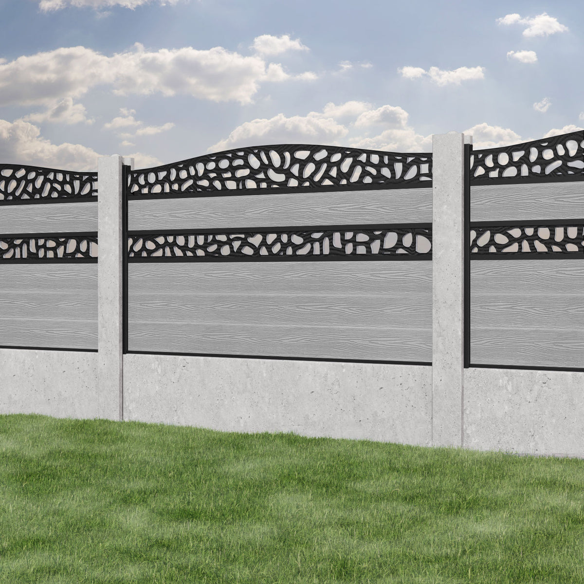 Classic Pebble Curved Top Split Screen Fence Panel Light Grey - for existing concrete posts