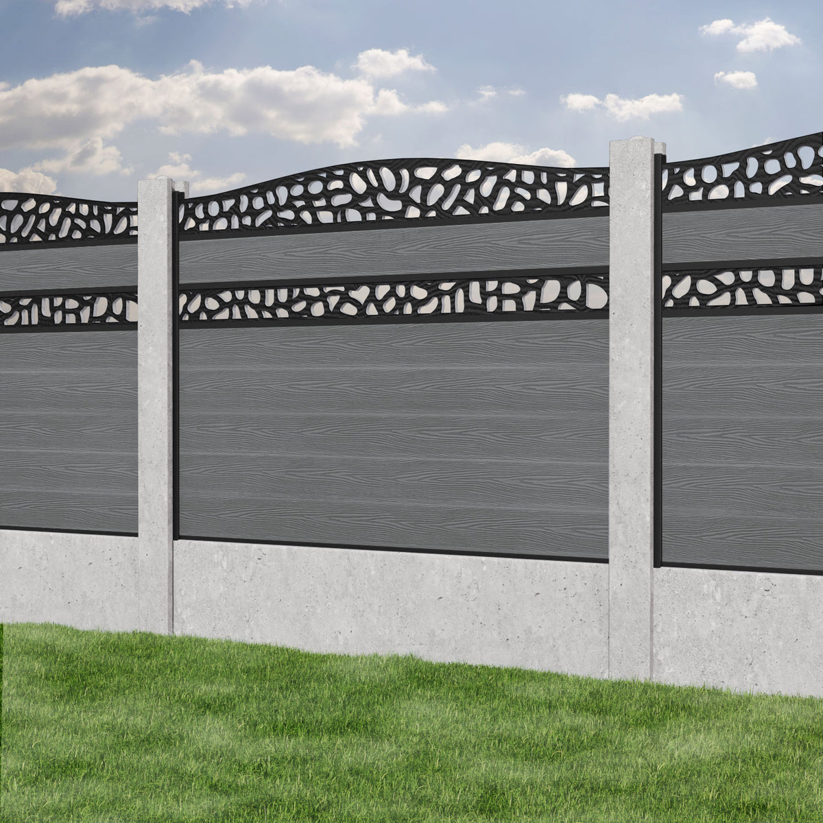 Classic Pebble Curved Top Split Screen Fence Panel Mid Grey - for existing concrete posts