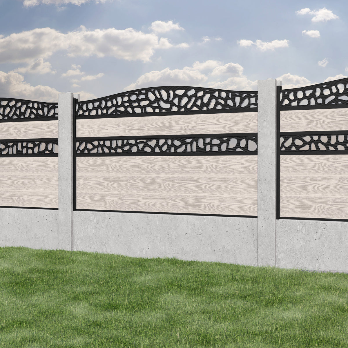 Classic Pebble Curved Top Split Screen Fence Panel Mid Stone - for existing concrete posts